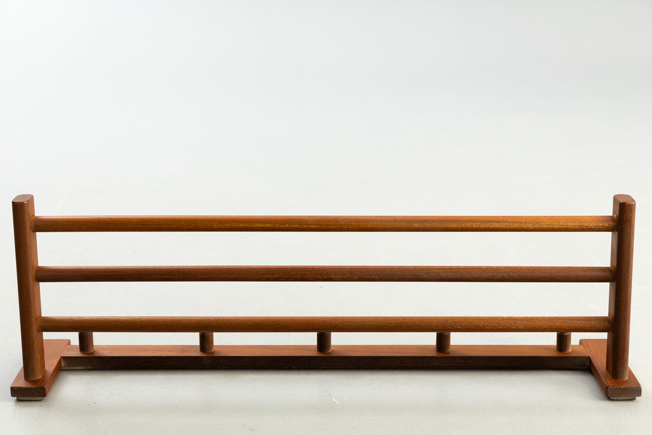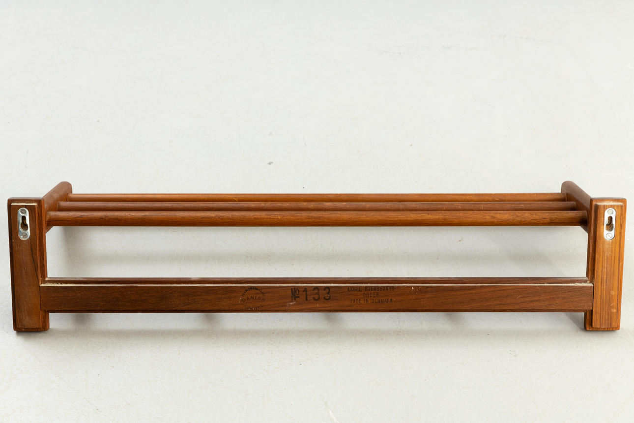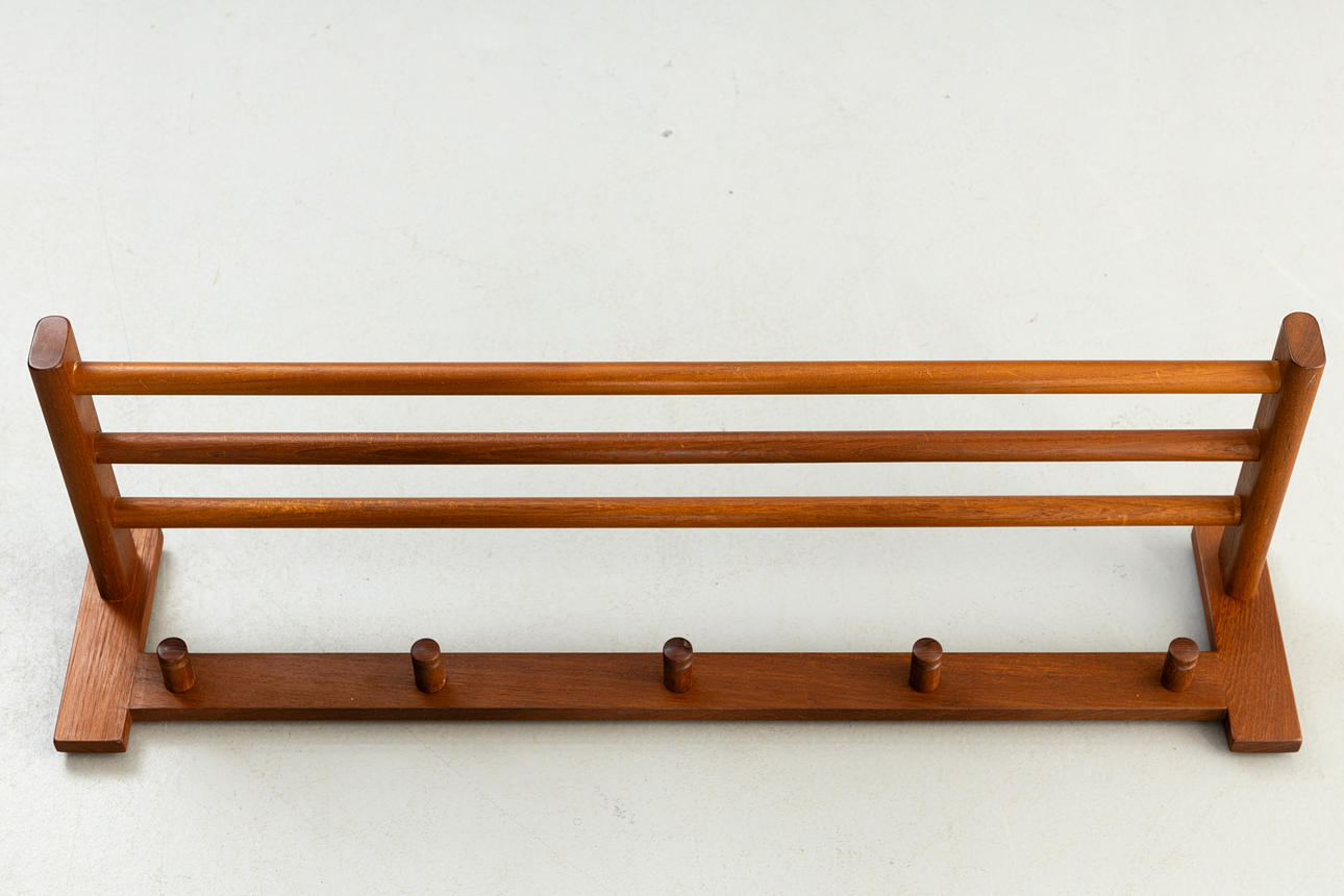 Garderobe von Aksel Kjersgaard für Odder. Dänemark, 1960er Jahre. Wandgarderobe aus Teakholz. Hutablage aus Rundhölzern, 4 Garderobenhaken. Rückseitig vom Hersteller gestempelt.