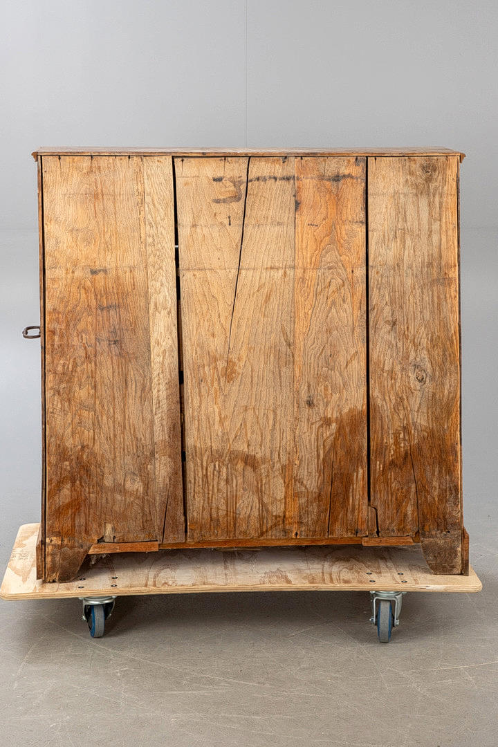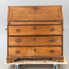 Gebrauchsspuren, Ergänzungen, Spuren von altem Wurmfraß. Schlösser und Scharniere später. Defekte, Bestoßungen. Schubladen und die Schrägklappe verzogen, lassen sich nicht abschließen. Stellenweise restaurierte Stellen. Inneneinrichtung fleckig und mit Kratzern.