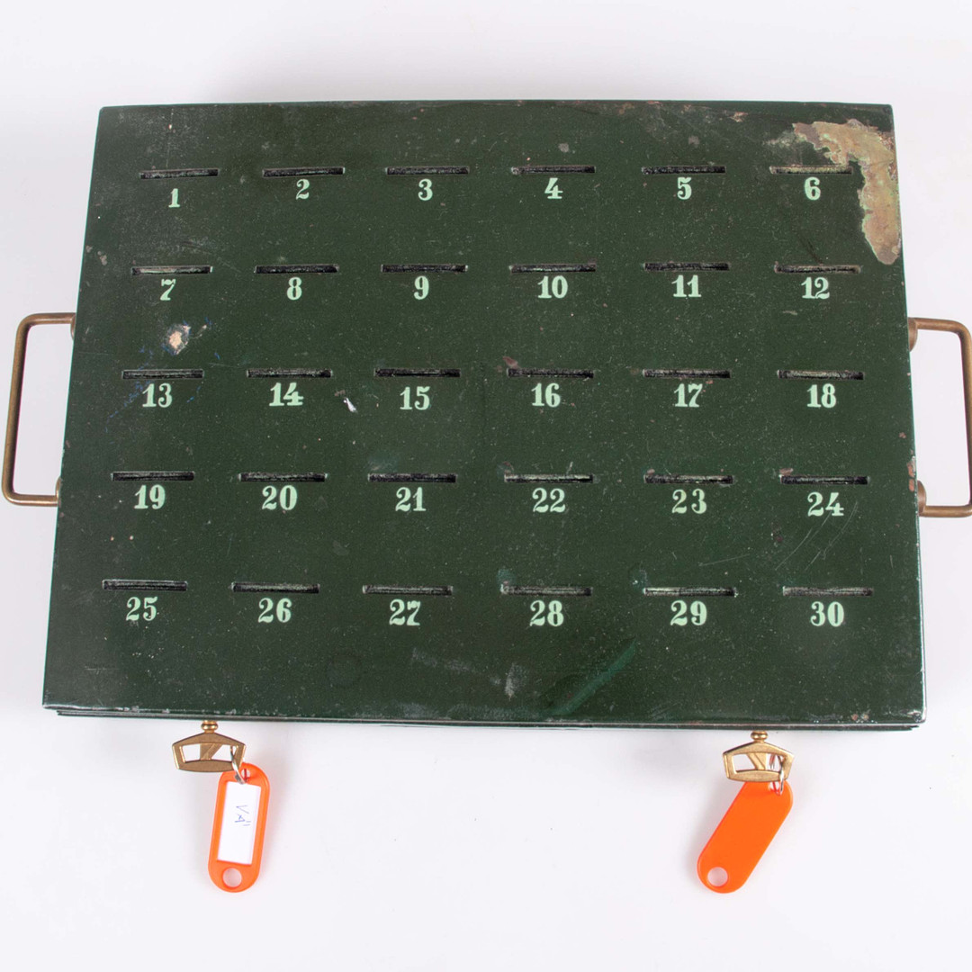 4268016. SCHULSPARDOSE, METALL, 50ER JAHRE.
