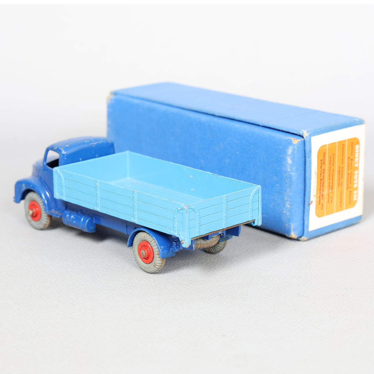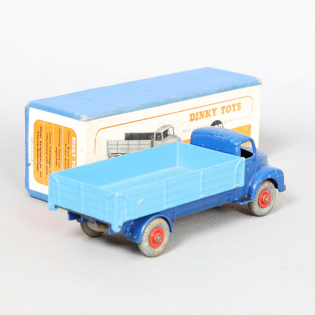 In orange-weiß beschrifteter Originalverpackung, mit aufklappbarer Heckklappe, zweifarbig blau mit roten Naben und grauen Reifen, Maße der Box 15 cm x 5,5 cm x 6 cm.