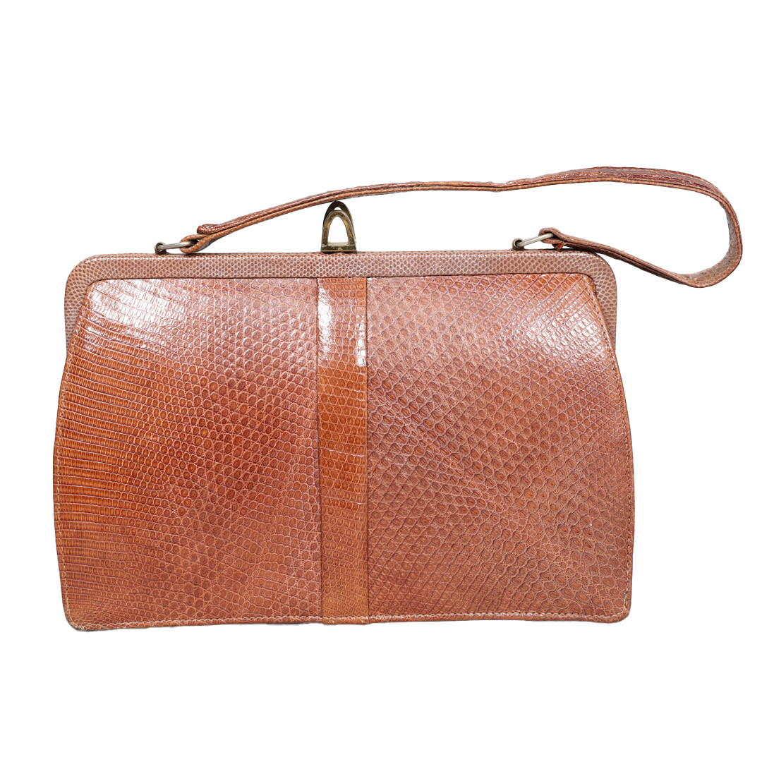 4269195. A MAPPIN & WEBB HANDTASCHE AUS BRAUNEM ECHSENLEDER.