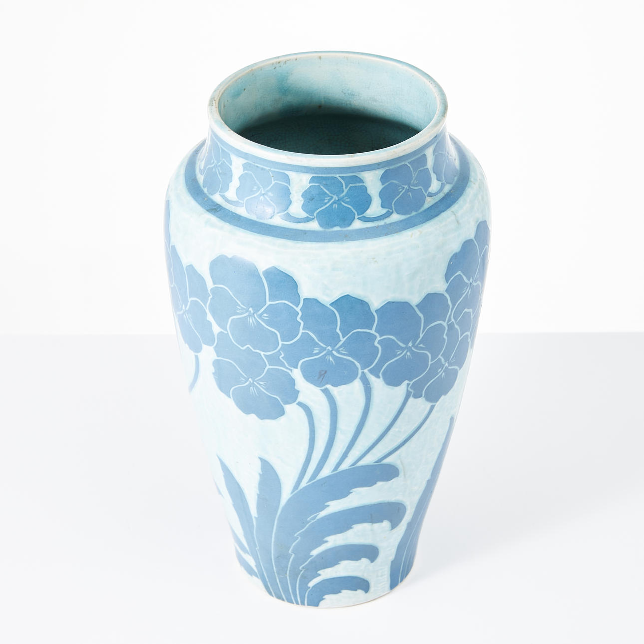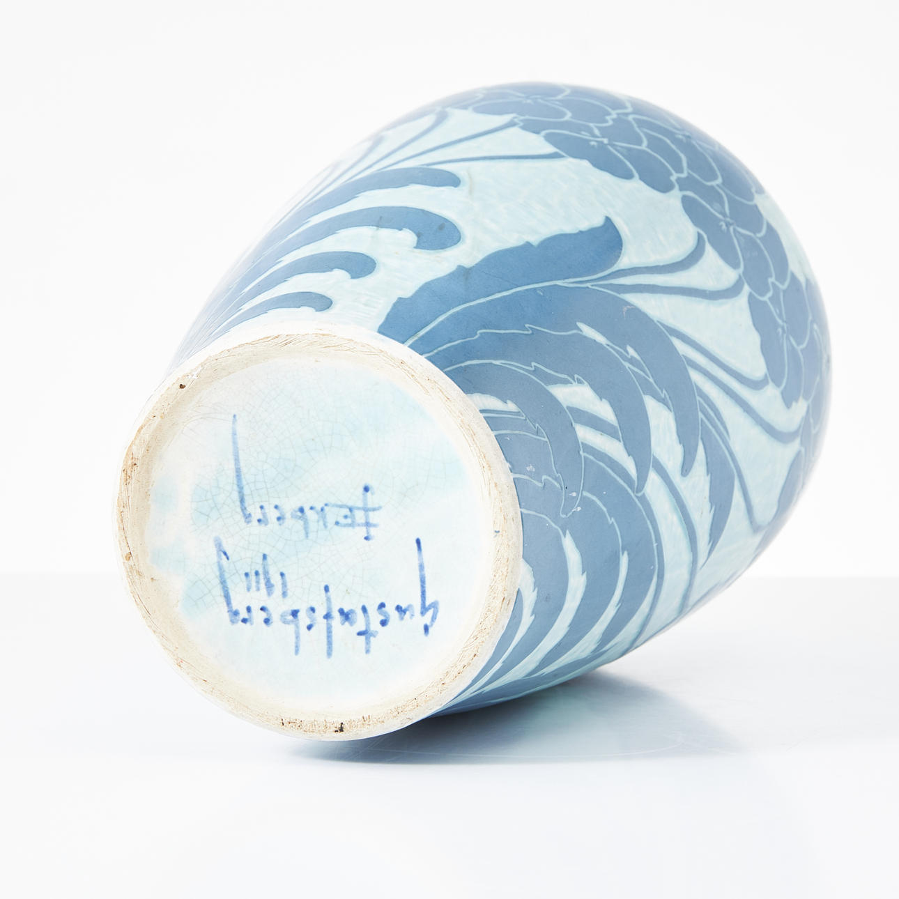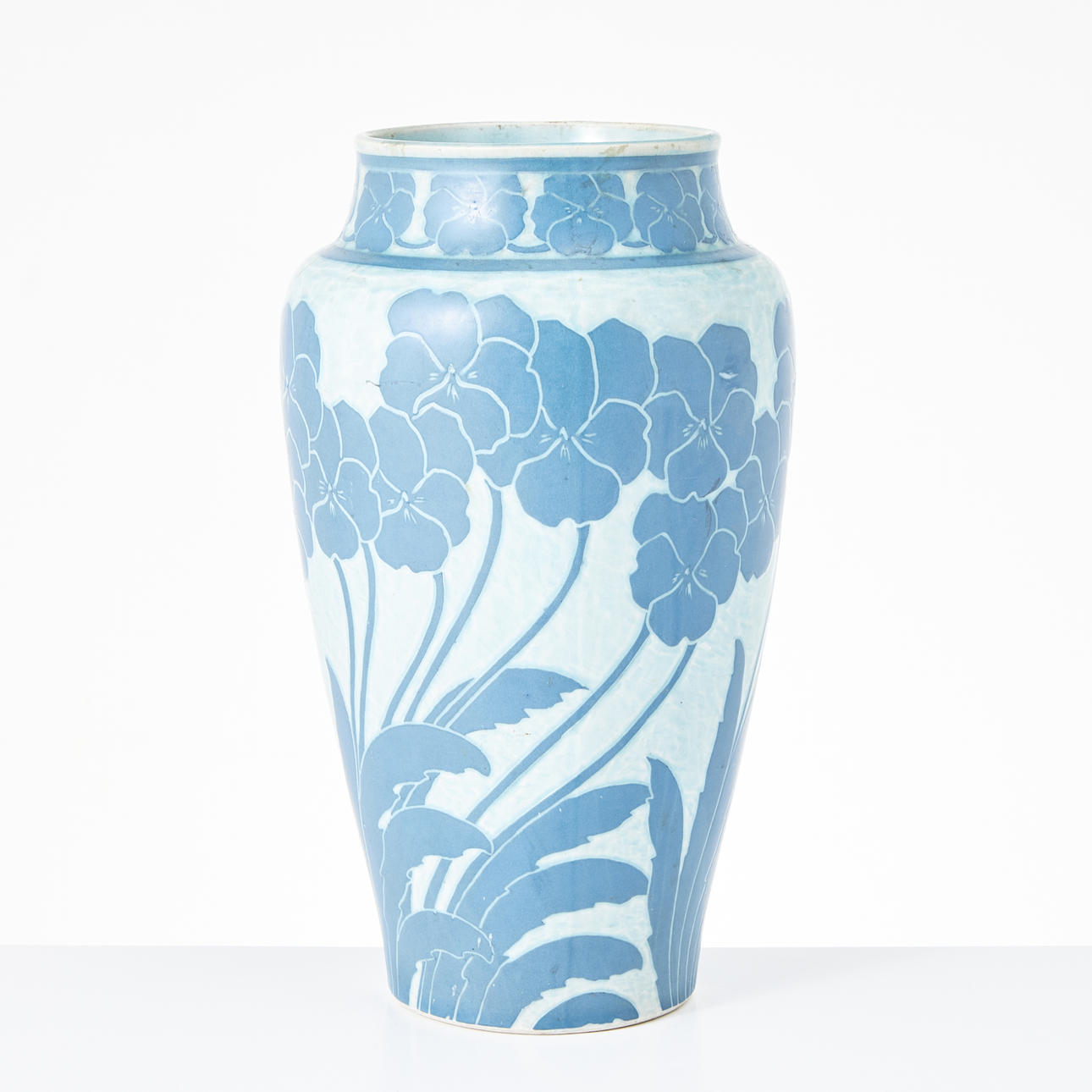 Dekor aus blauen Veilchen auf hellblauem Grund, signiert und datiert Gustafsberg 1911 JekBerg, Höhe ca. 33 cm.