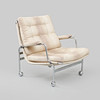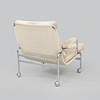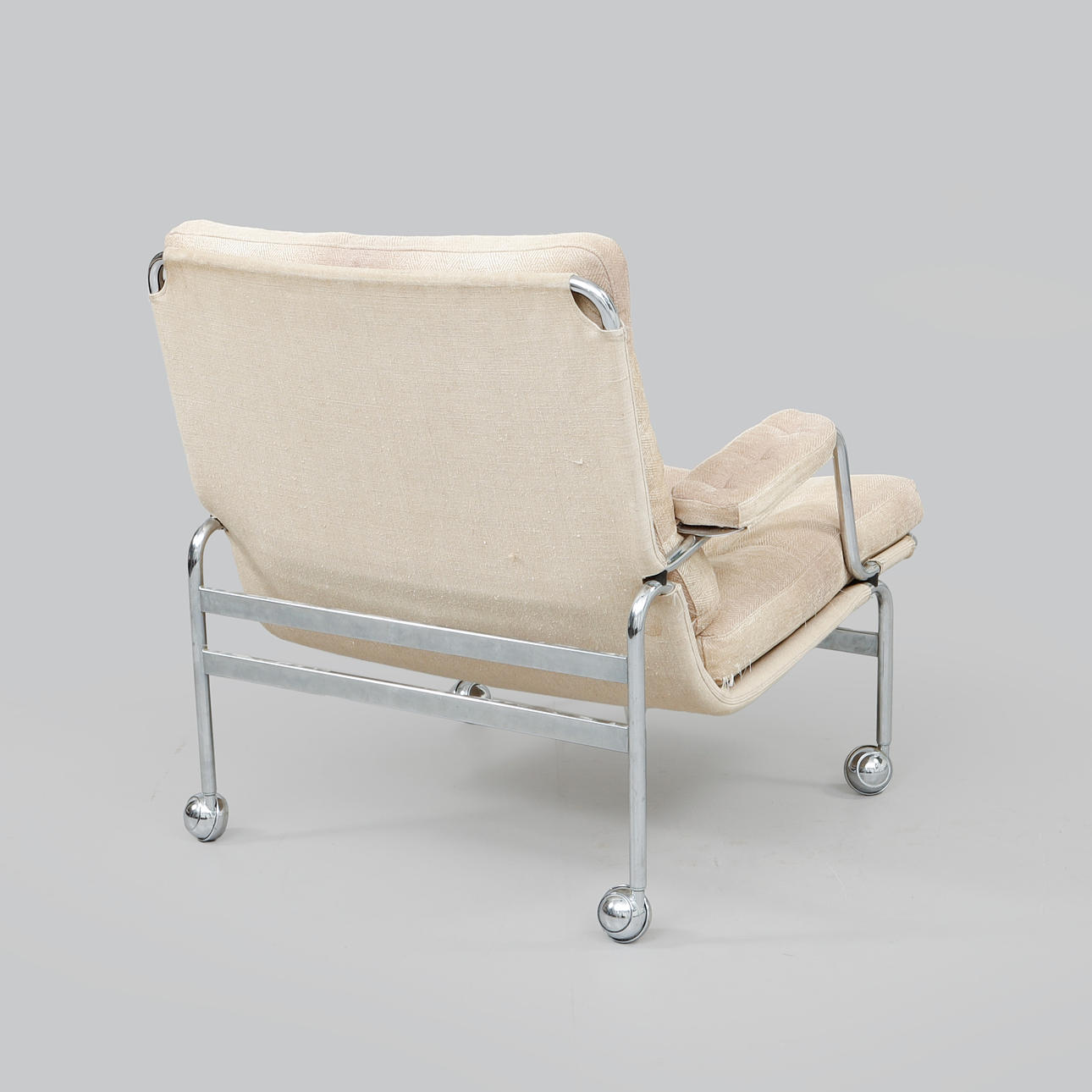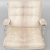 Gestell aus verchromtem Metall mit Sitz aus Segeltuch und losen, mit Stoff bezogenen Kissen. Höhe 75 cm, Breite 75 cm, Sitzhöhe 38 cm.