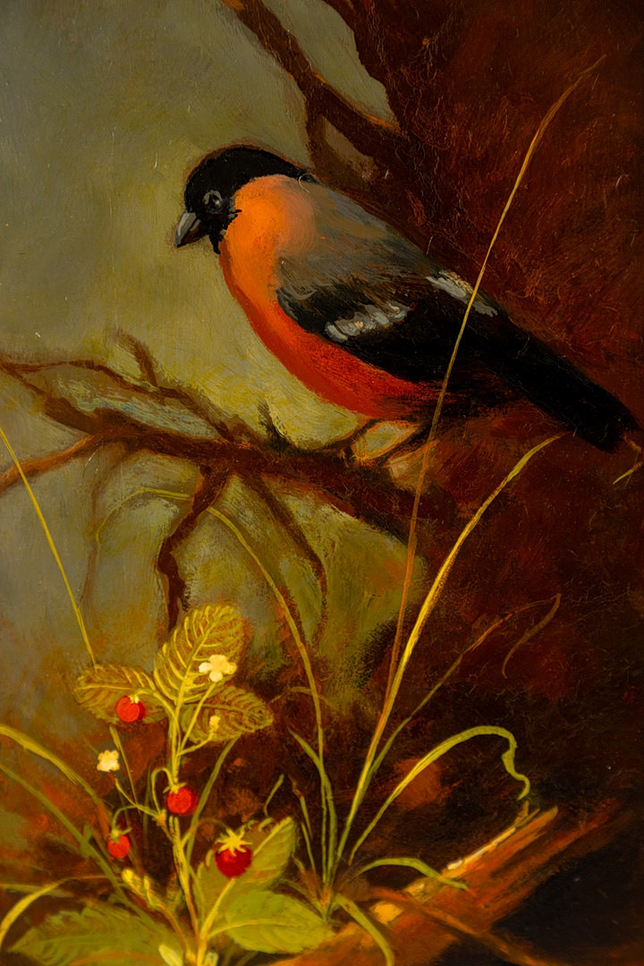 4270632. SEPP HAPP (1912-?). Dompfaff mit Erdbeeren.