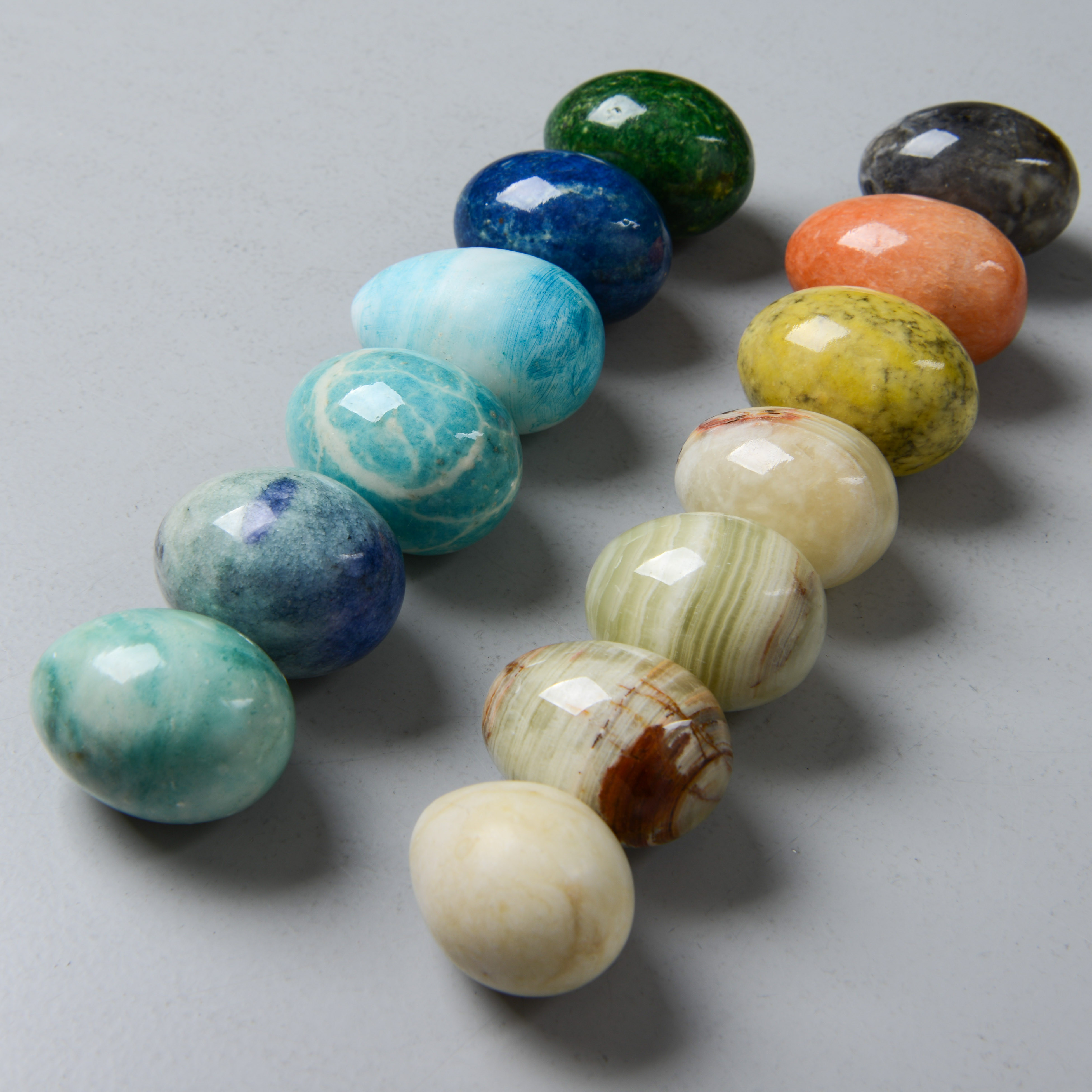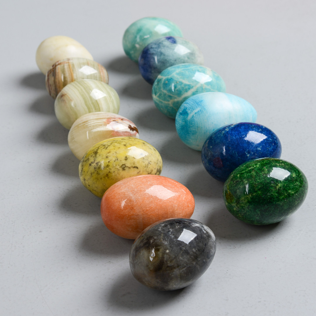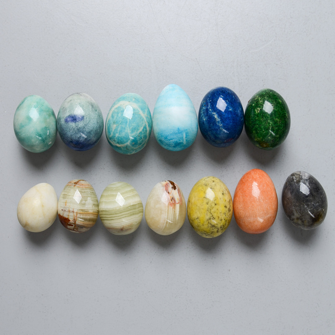 4273757. STEINEIER, 13 Stück, verschiedene Steinsorten.