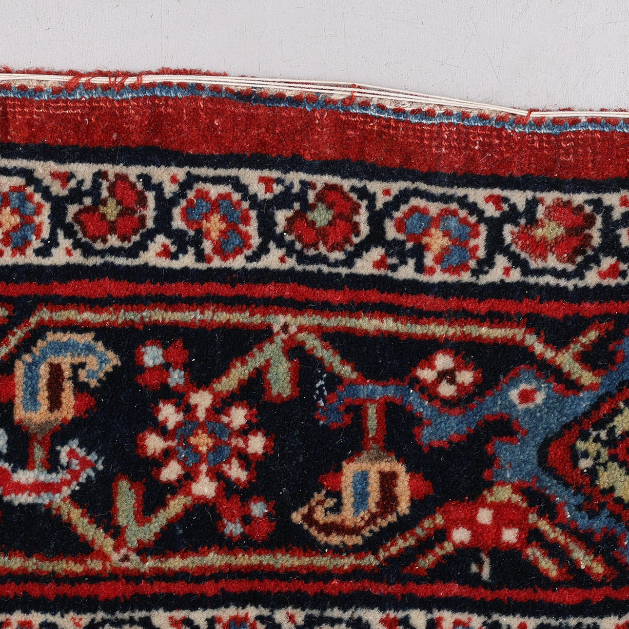 Fransen fehlen, Randspuren. Verschleiß und Abnutzung.