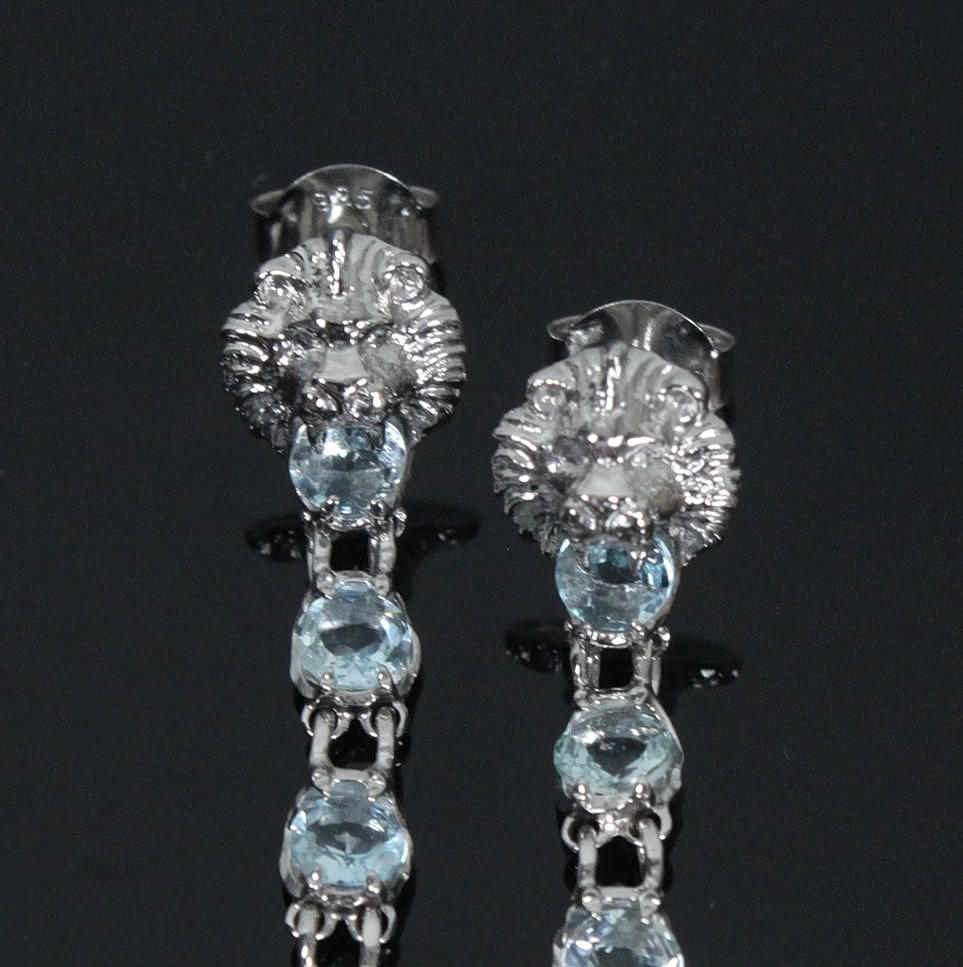 Löwenkopf-Ohrhänger mit Aquamarin