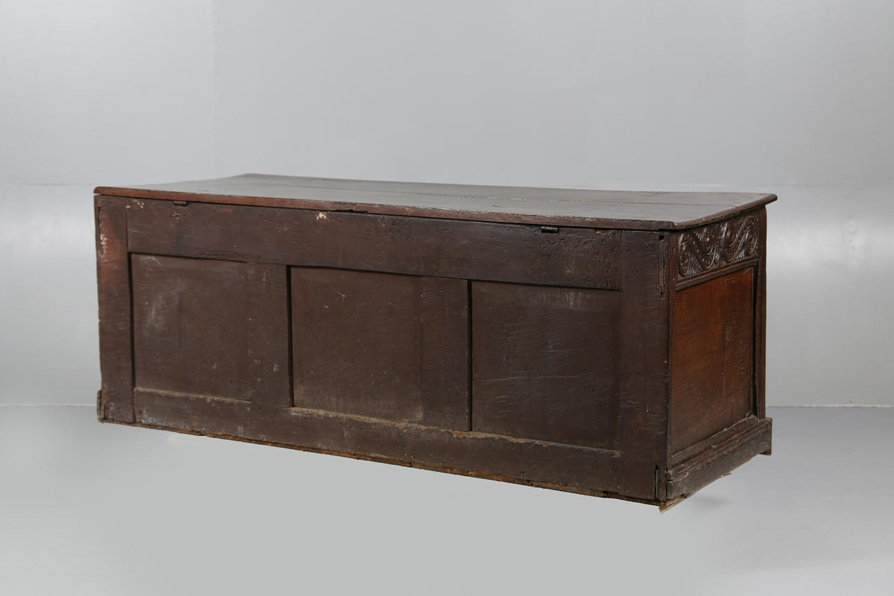 4276595. EINE GESCHNITZTE EICHENTRUHE AUS DEM 17. JAHRHUNDERT.