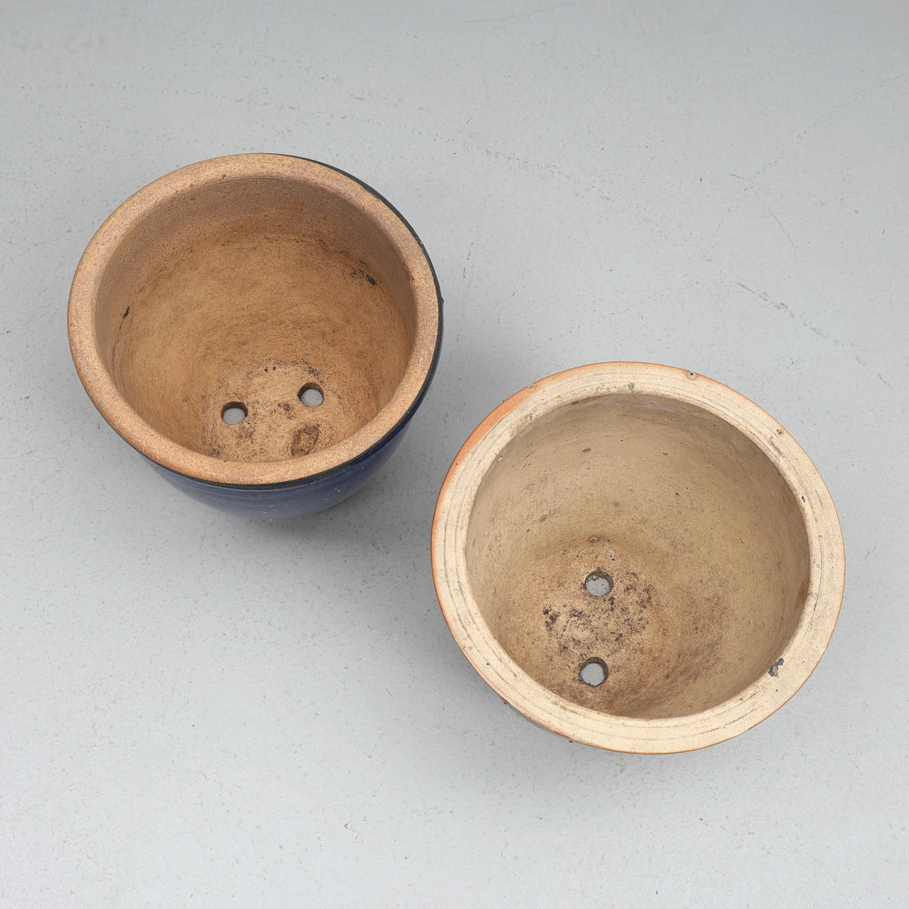 4277017. 2 TÖPFE, glasiertes Steingut.