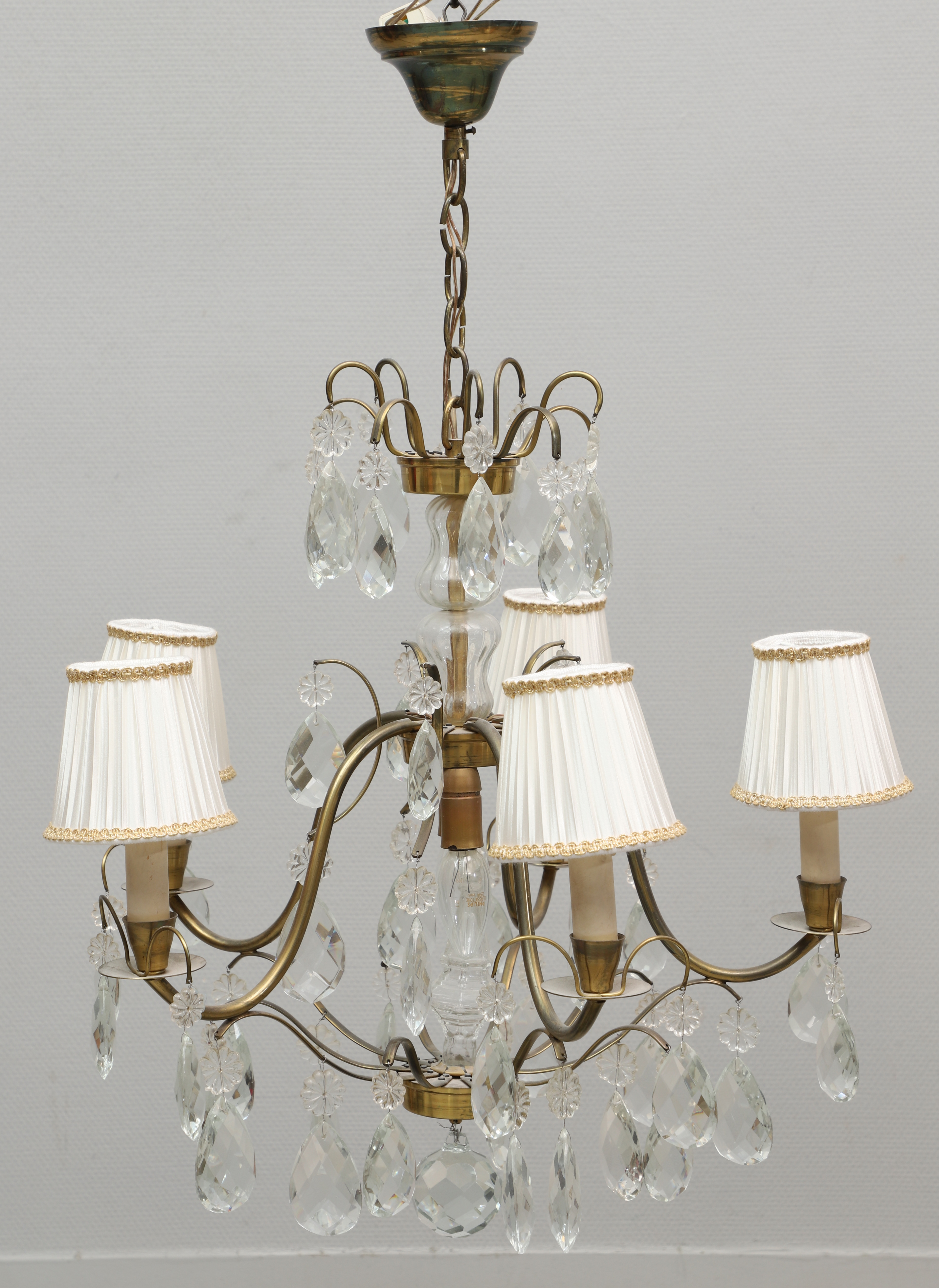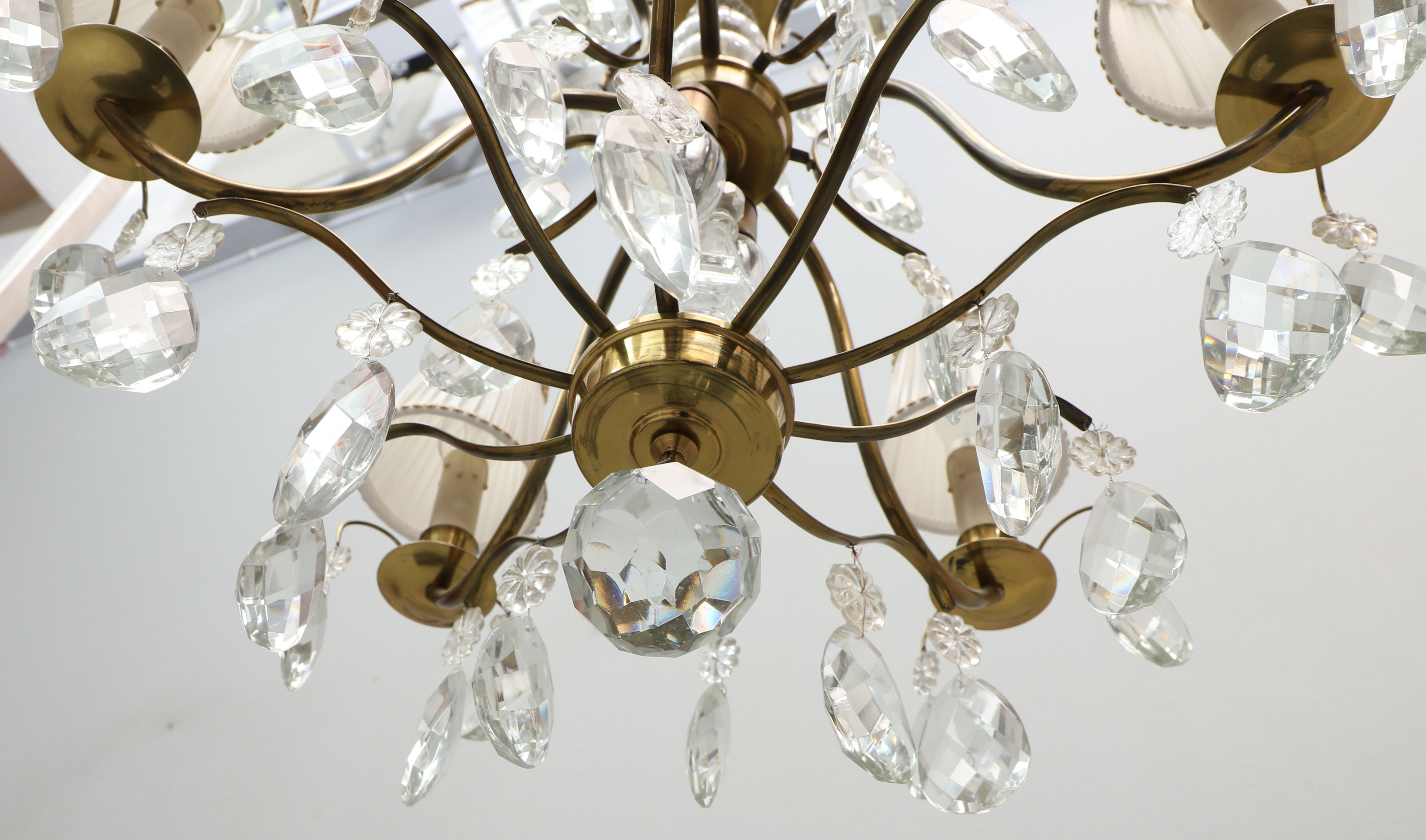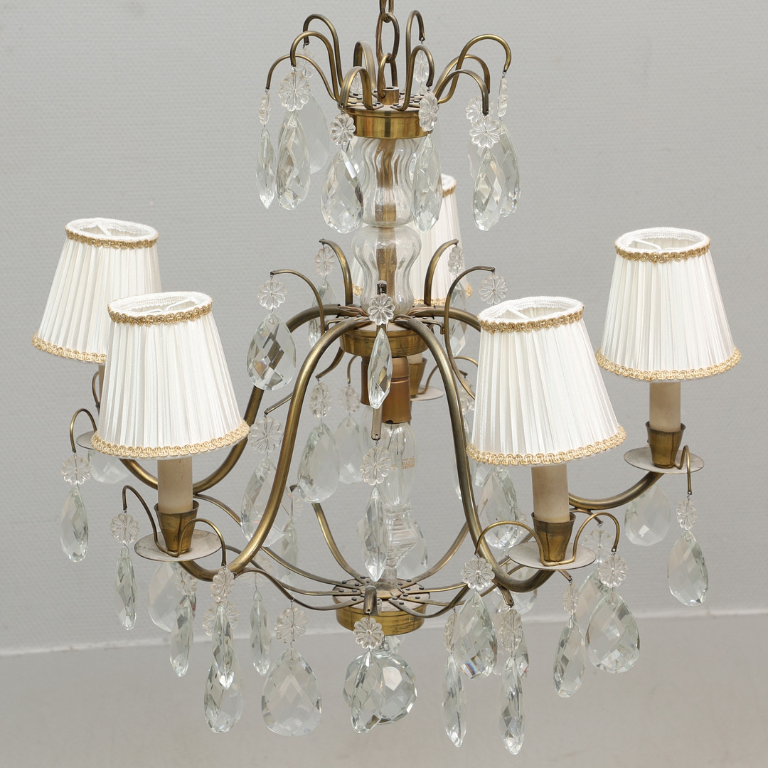 4277155. DECKENLEUCHTER, Rokoko-Stil, Messing und Prismen.