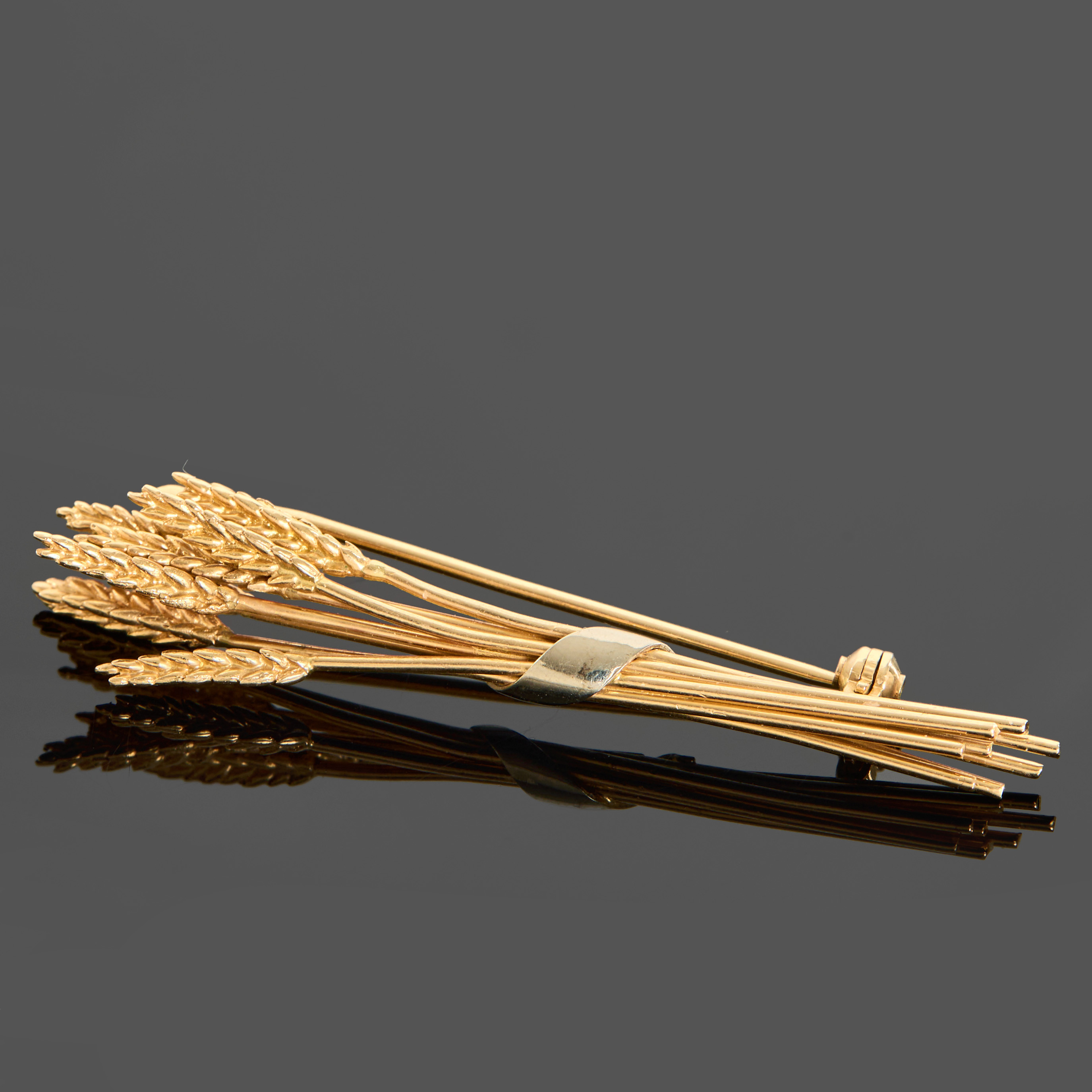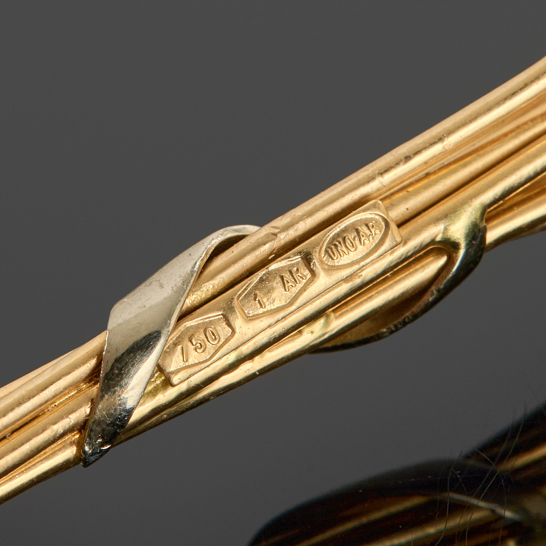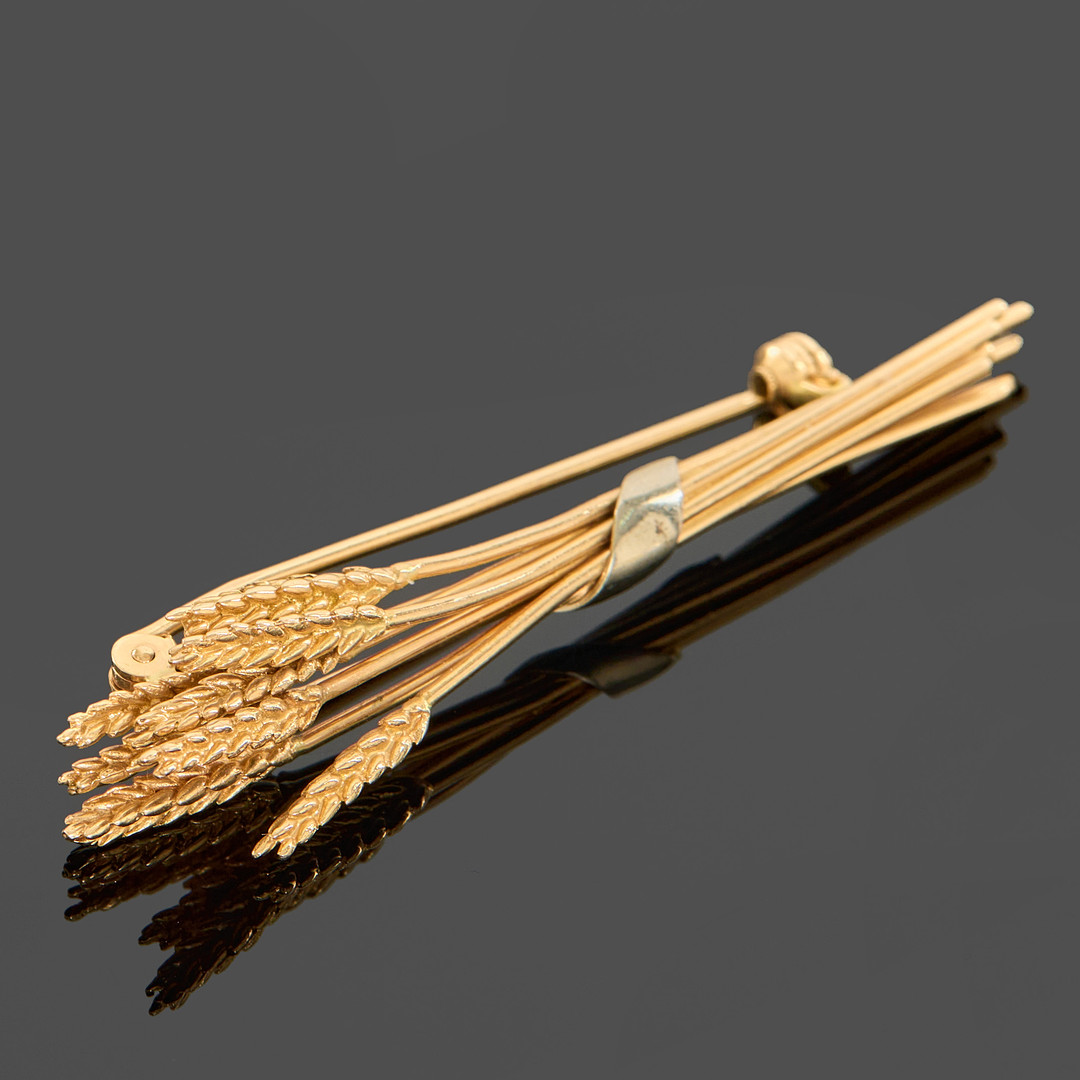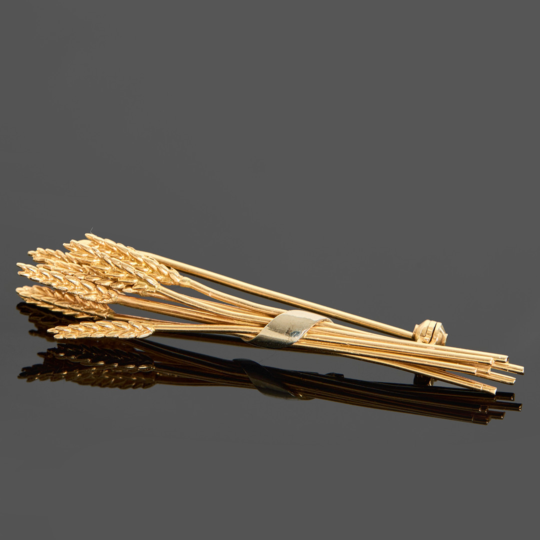 4277253. BROSCHE, 18 Karat Gold, Form einer Weizenaxt.