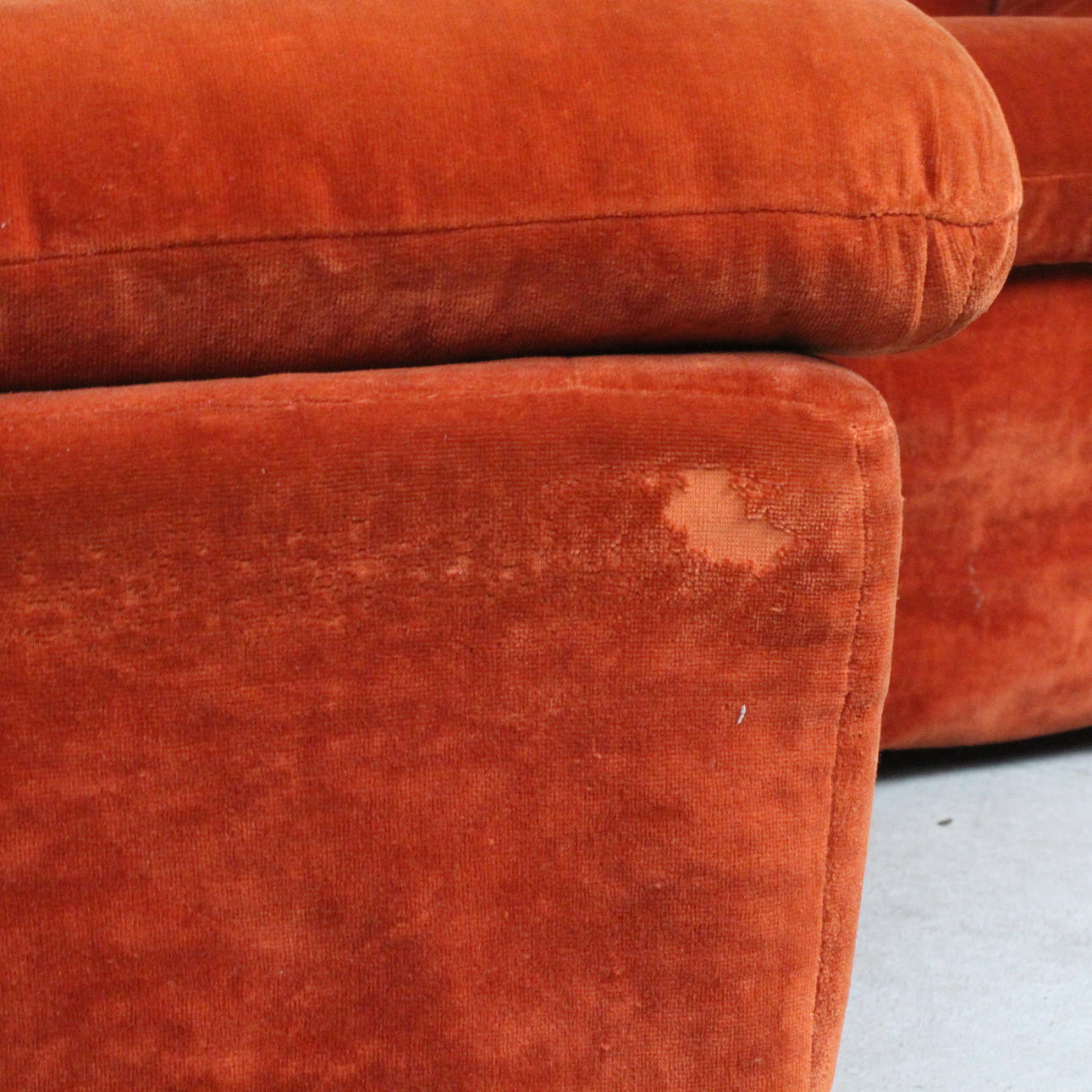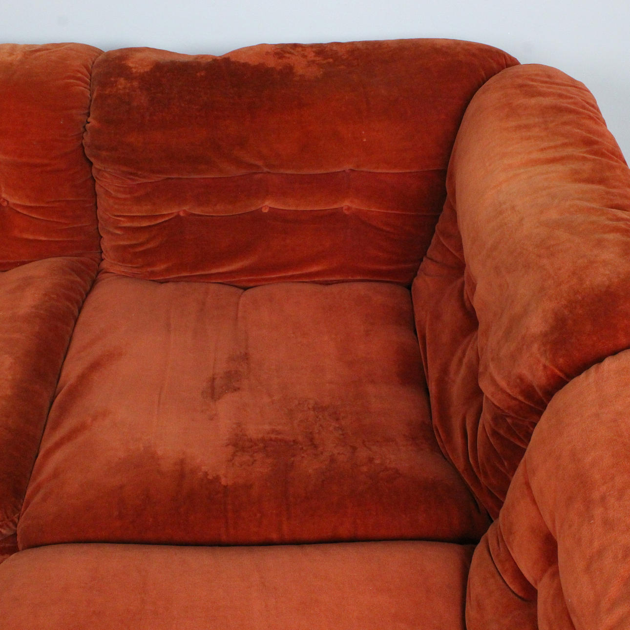 Altersgemäße gebrauchs- und Reibespuren, Stoff stellenweise berieben und angeschmutzt / fleckig.