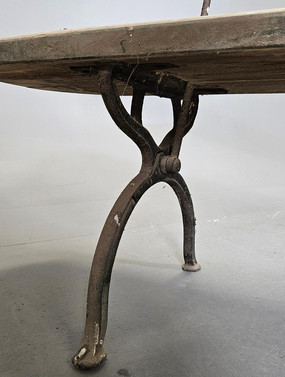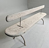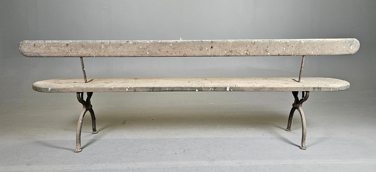 Holz und Metallguss verstellbare Rückenlehne Länge ca. 240, Breite 43, Höhe 86 cm Sitzhöhe ca. 48 cm.