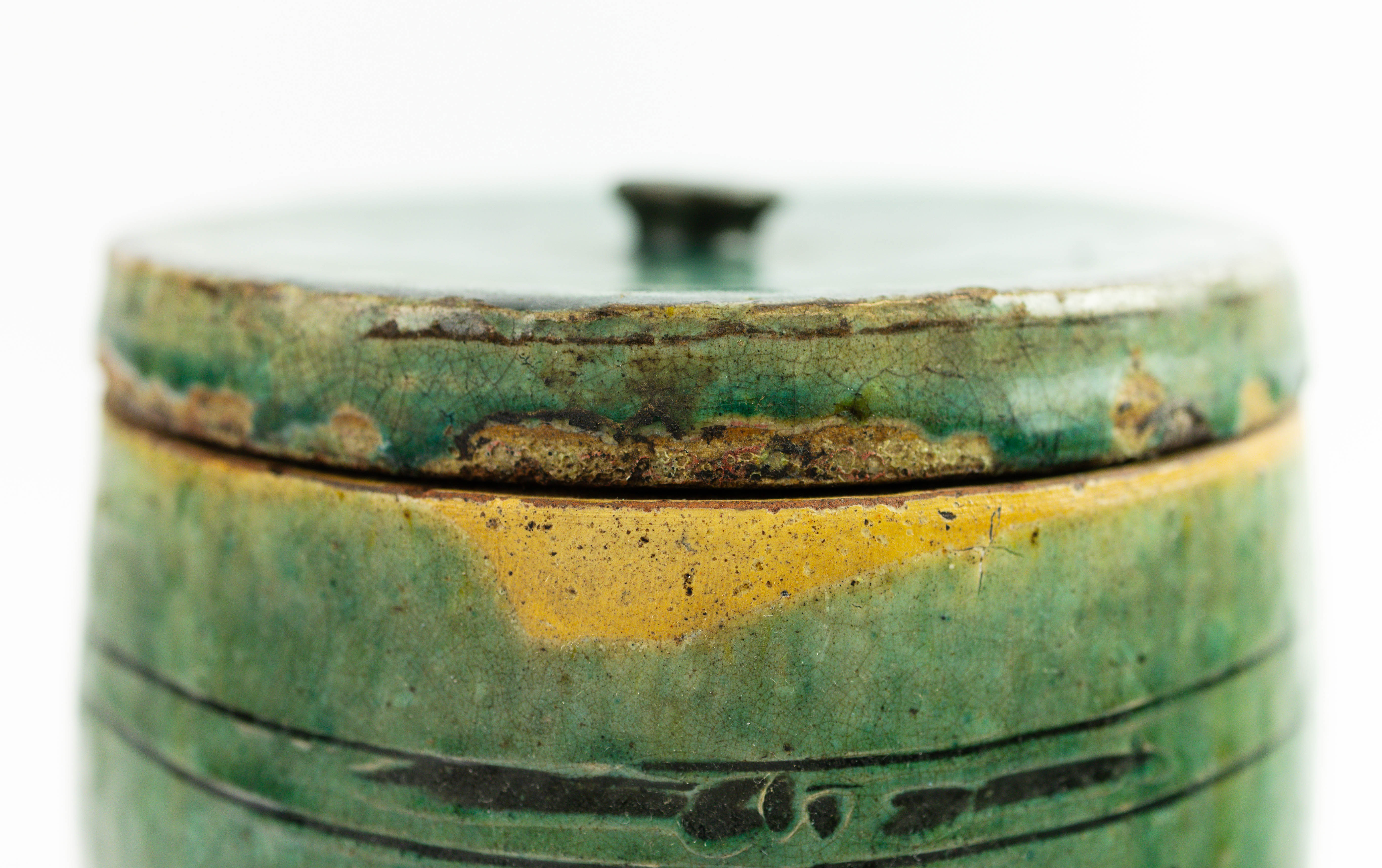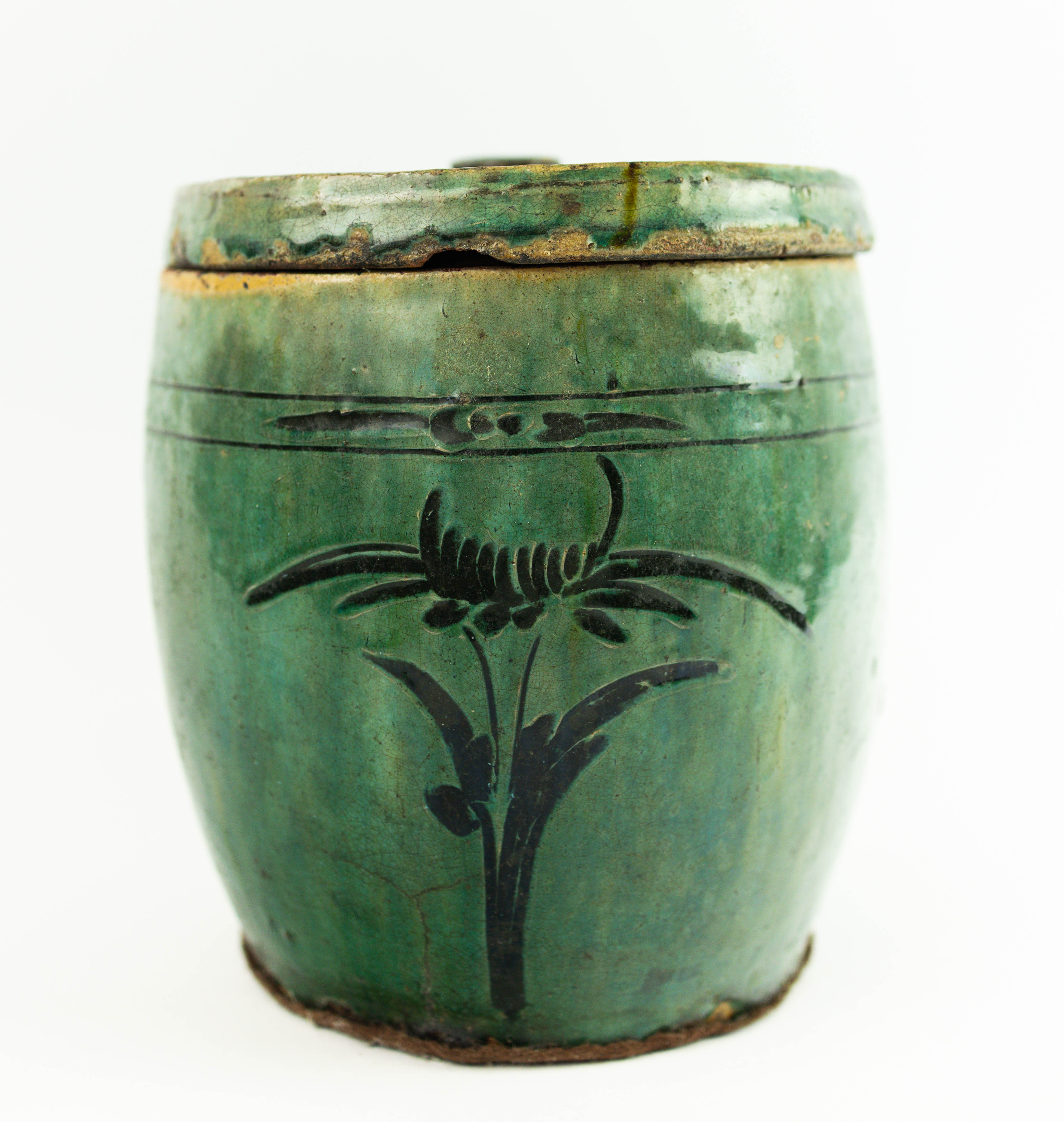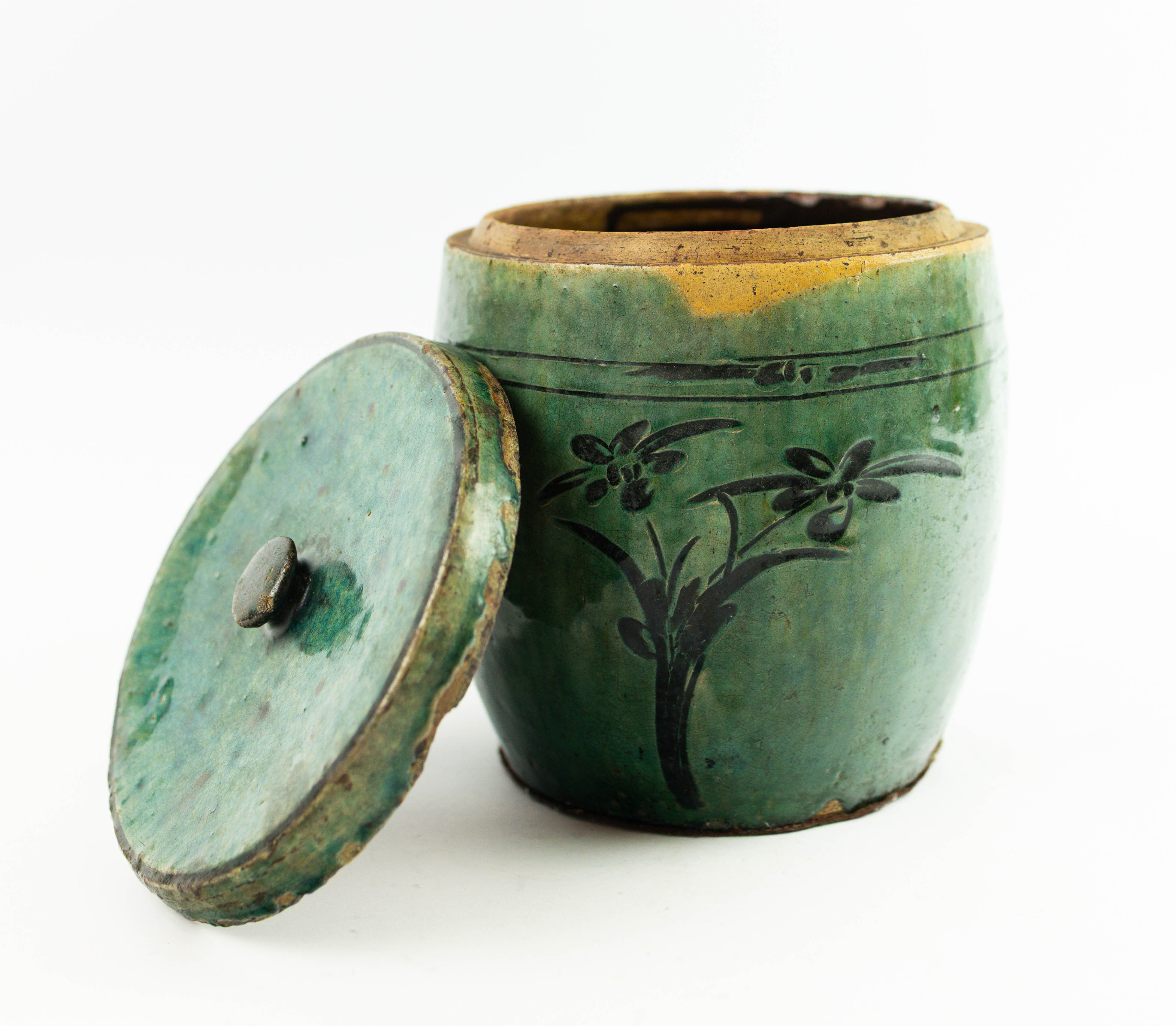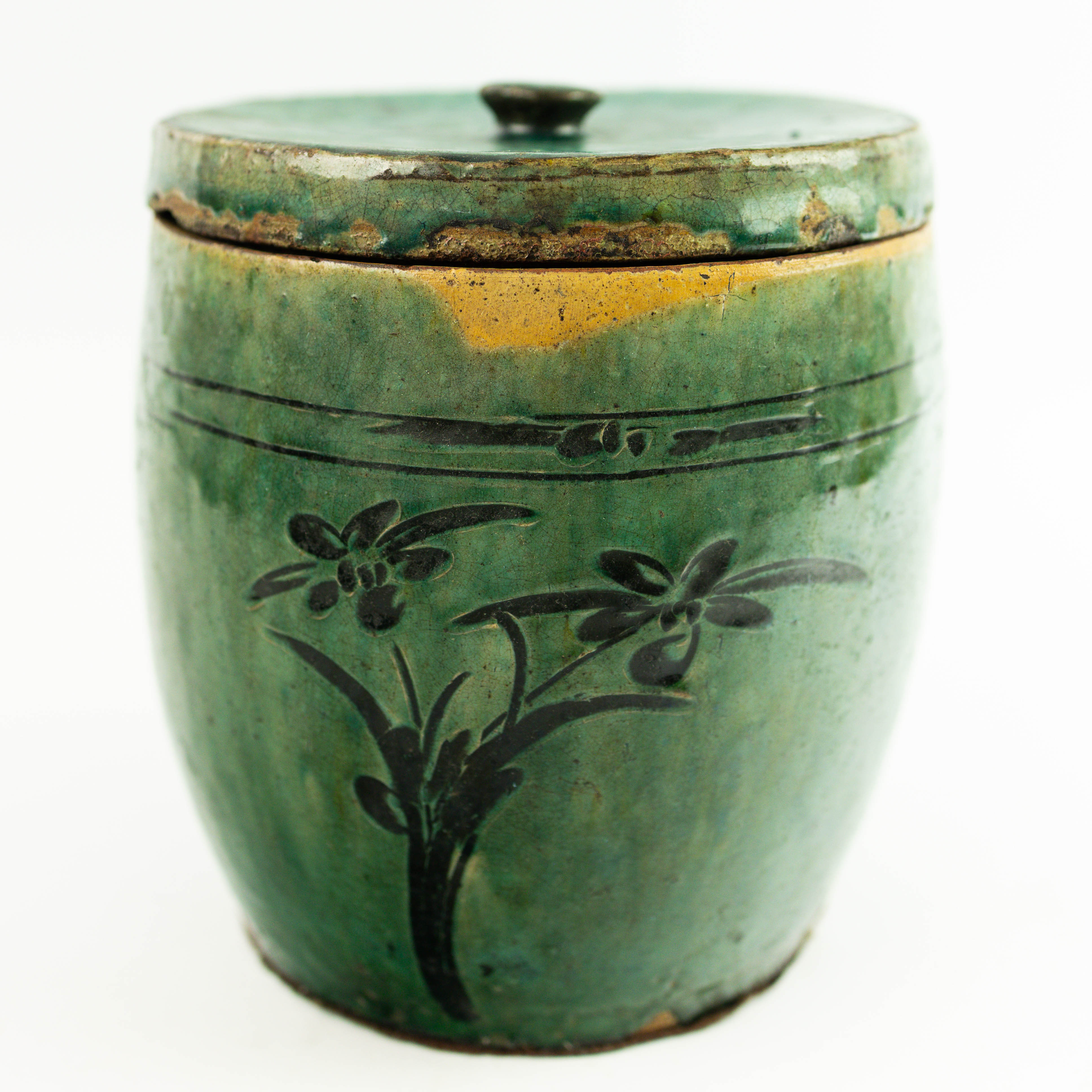 4278844. EIN CHINESISCHES STEINZEUGGLAS MIT DECKEL.