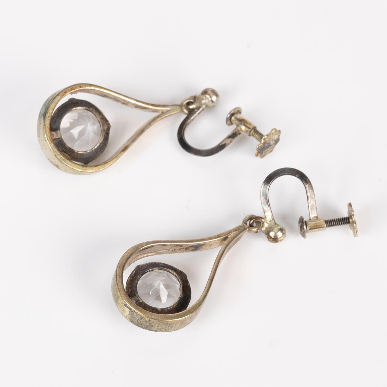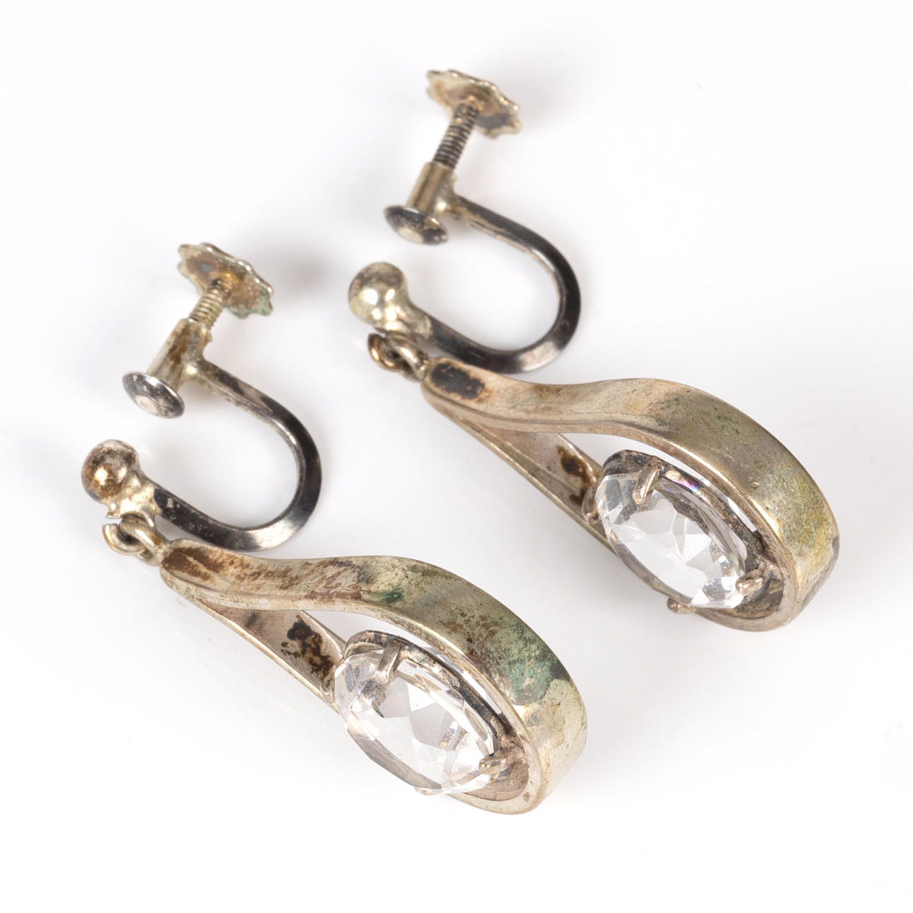 OHRRINGE in Silber mit weißem Stein, ein Paar.