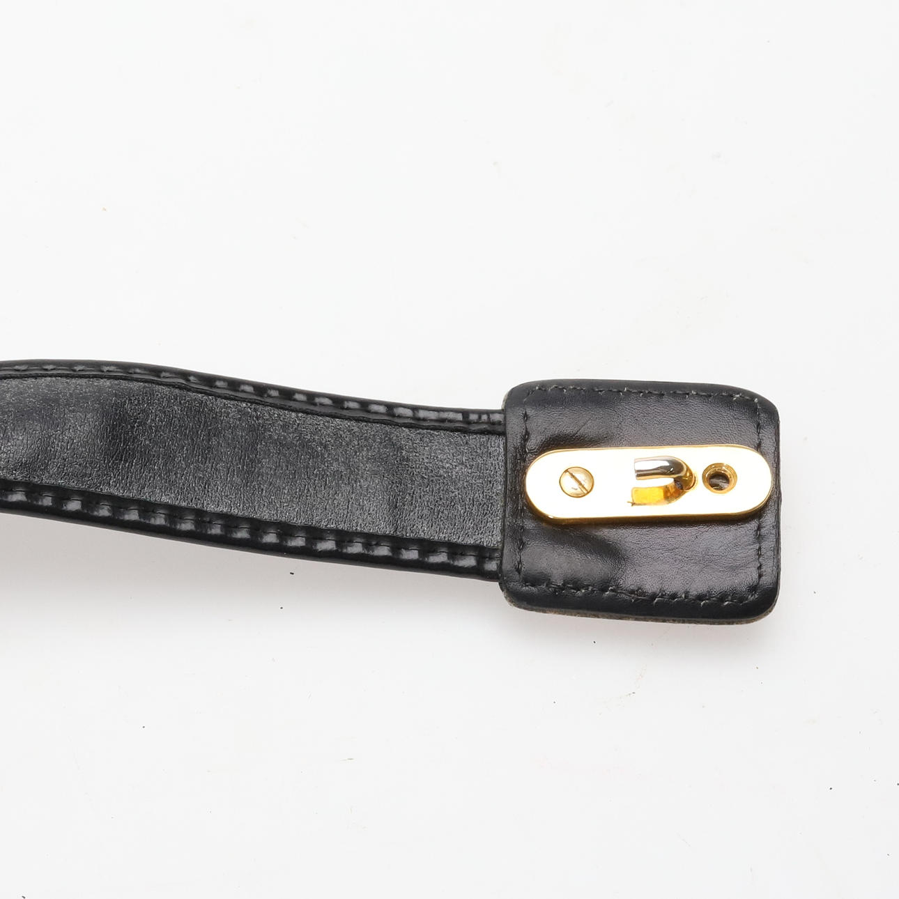 Verschleiß und Abnutzung. Das Leder auf der Innenseite ist etwas abgezogen und der Text auch. Die Schnalle hat keine Schraube, ist aber festgefahren.