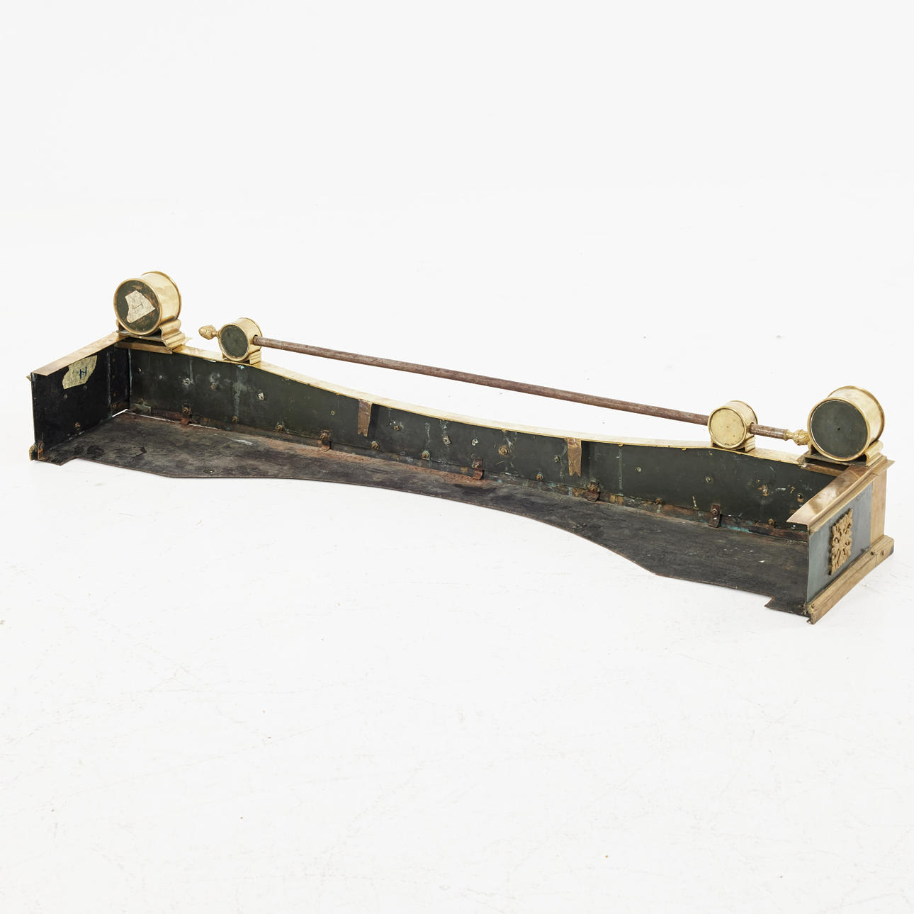 4281101. Eine restaurierte Messinggarnitur, Frankreich, erste Hälfte des 19. Jahrhunderts, vergoldetes und dunkel patiniertes Messing, Eisen.