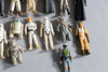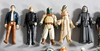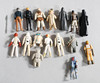 Eine Sammlung alter Kenner Star Wars-Figuren mit verschiedenen Charakteren, darunter Boba Fett (1979), R2-D2, Darth Sidious, Ewoks, Snowtroopers, Darth Vader, Lando Calrissian, Admiral Akbar, Bossk, Han Solo, Luke Skywalker und mehr, jede Figur ist etwa 10 cm hoch. (Menge).