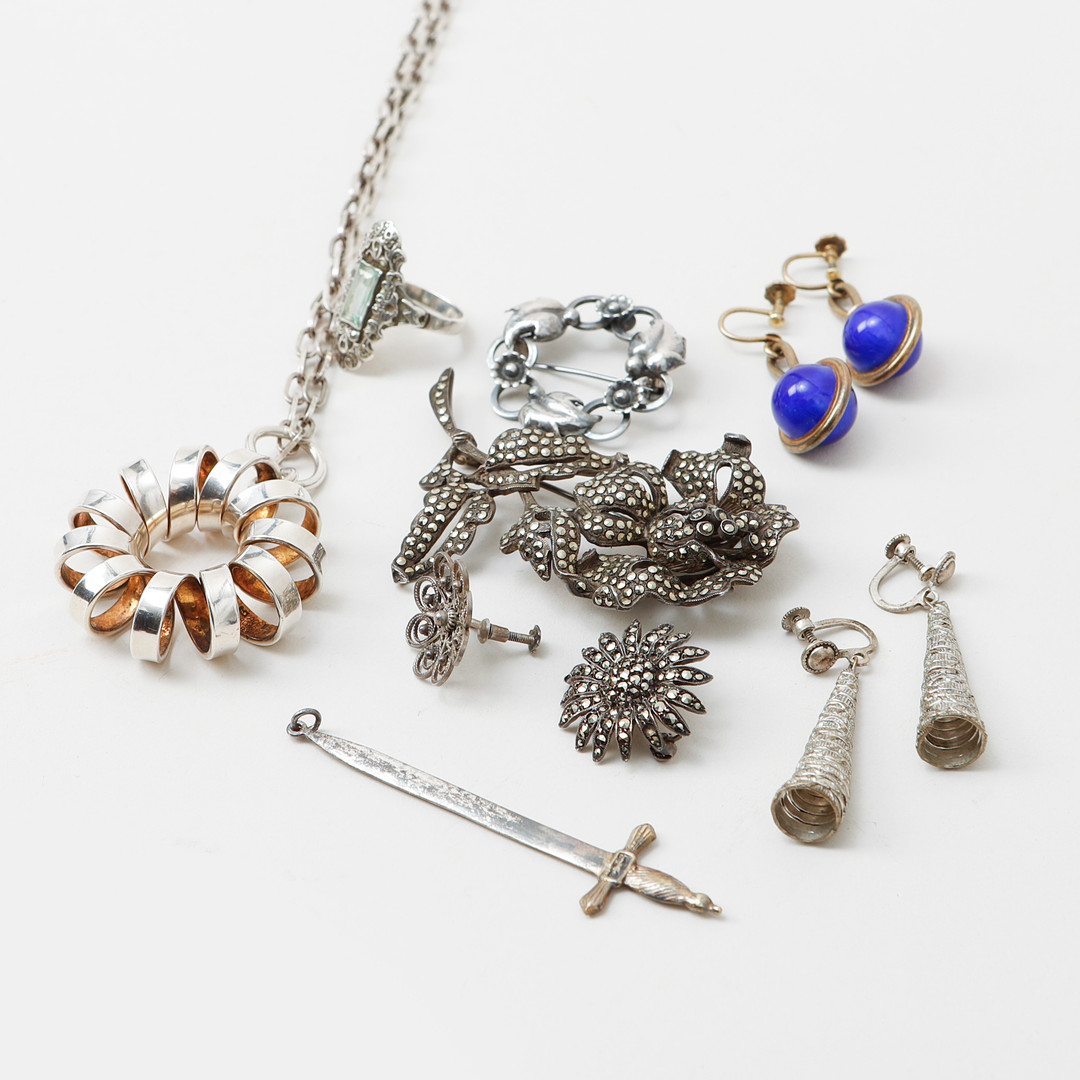 4282128. SCHMUCK, 11 Stück, überwiegend Silber.