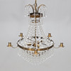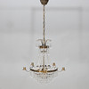 3 Lichtpunkte und 5 Kerzenhalter Durchmesser ca. 50 cm. Höhe exkl. Kette und Deckenbecher ca. 55 cm.
