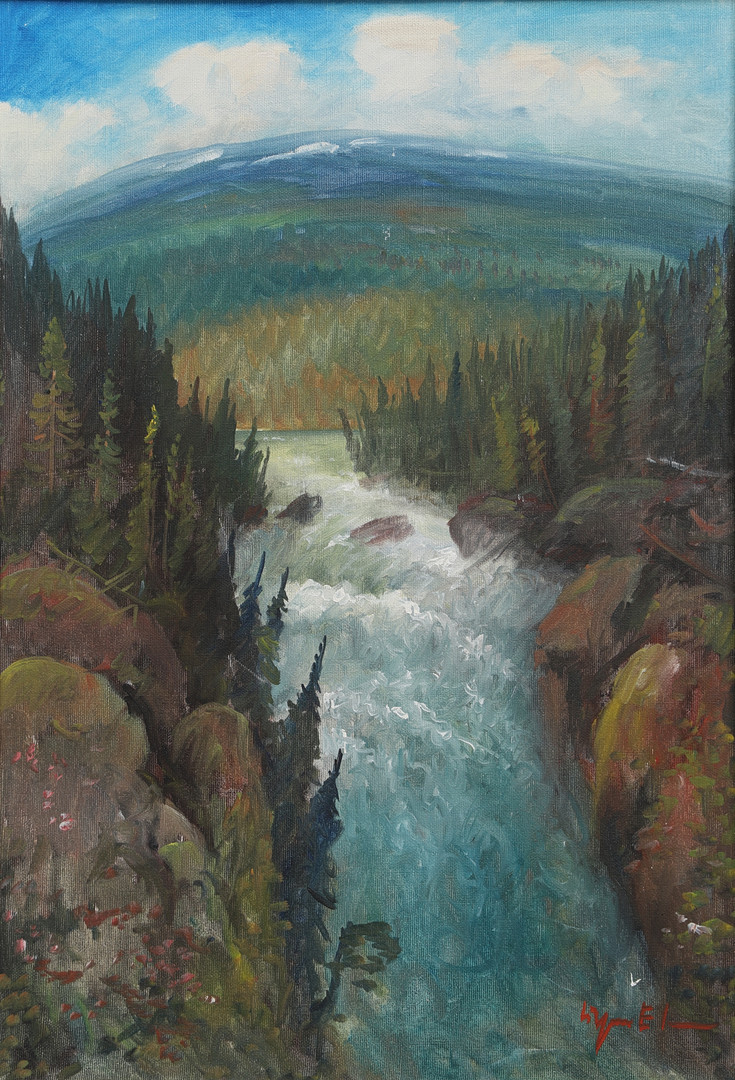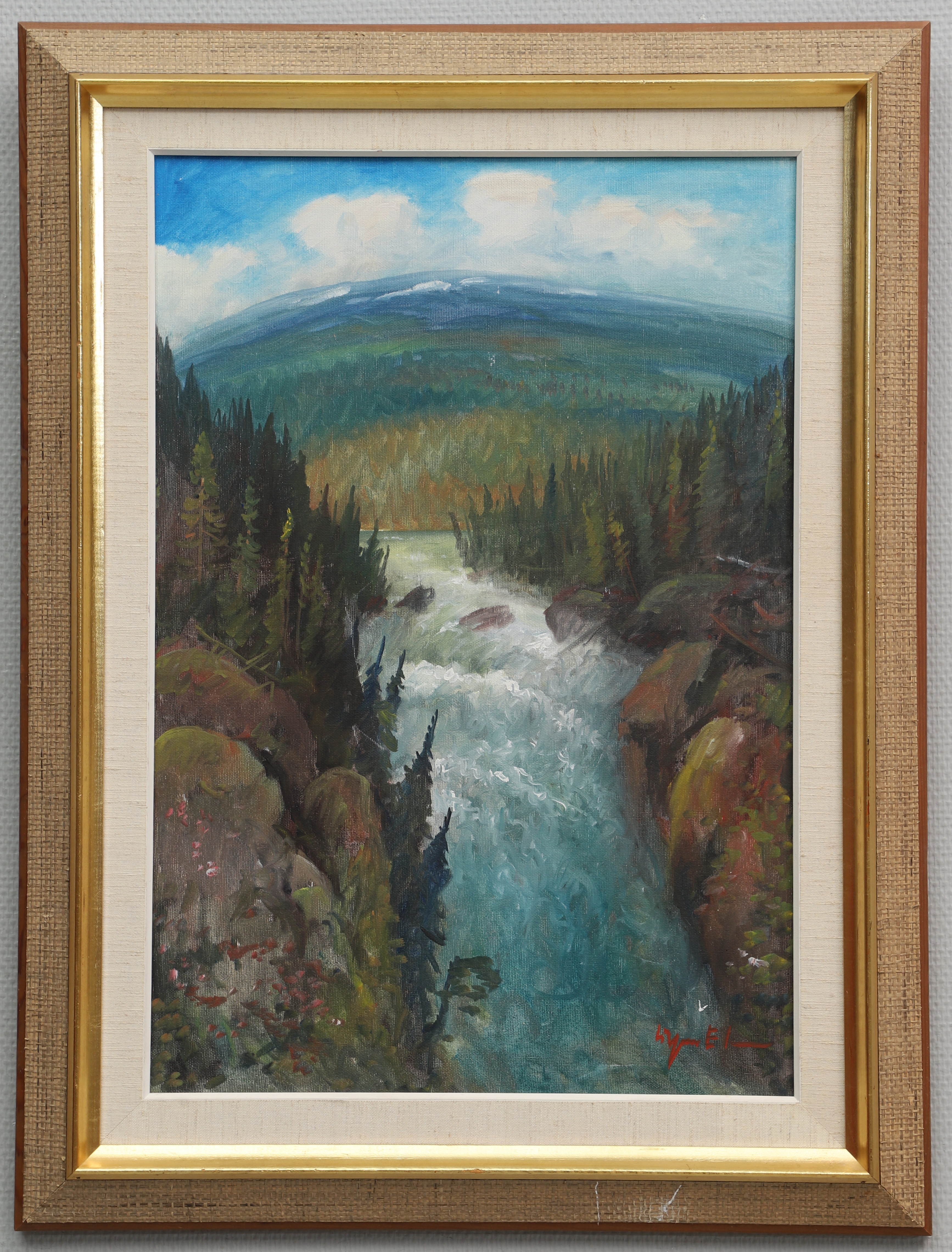 4286201. OIDENTIFIERAD KONSTNÄR. Öl auf Leinwand, Wasserfall, signiert.