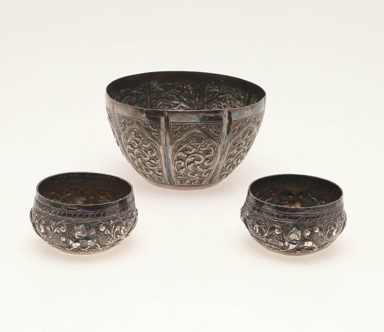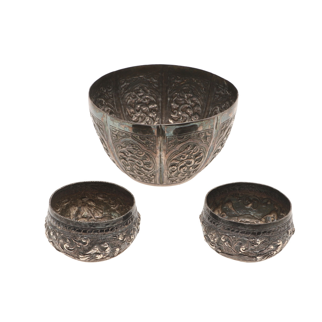 4286364. EINE INDISCHE ODER FERNÖSTLICHE GEPRÄGTE WEISSE METALLSCHALE.