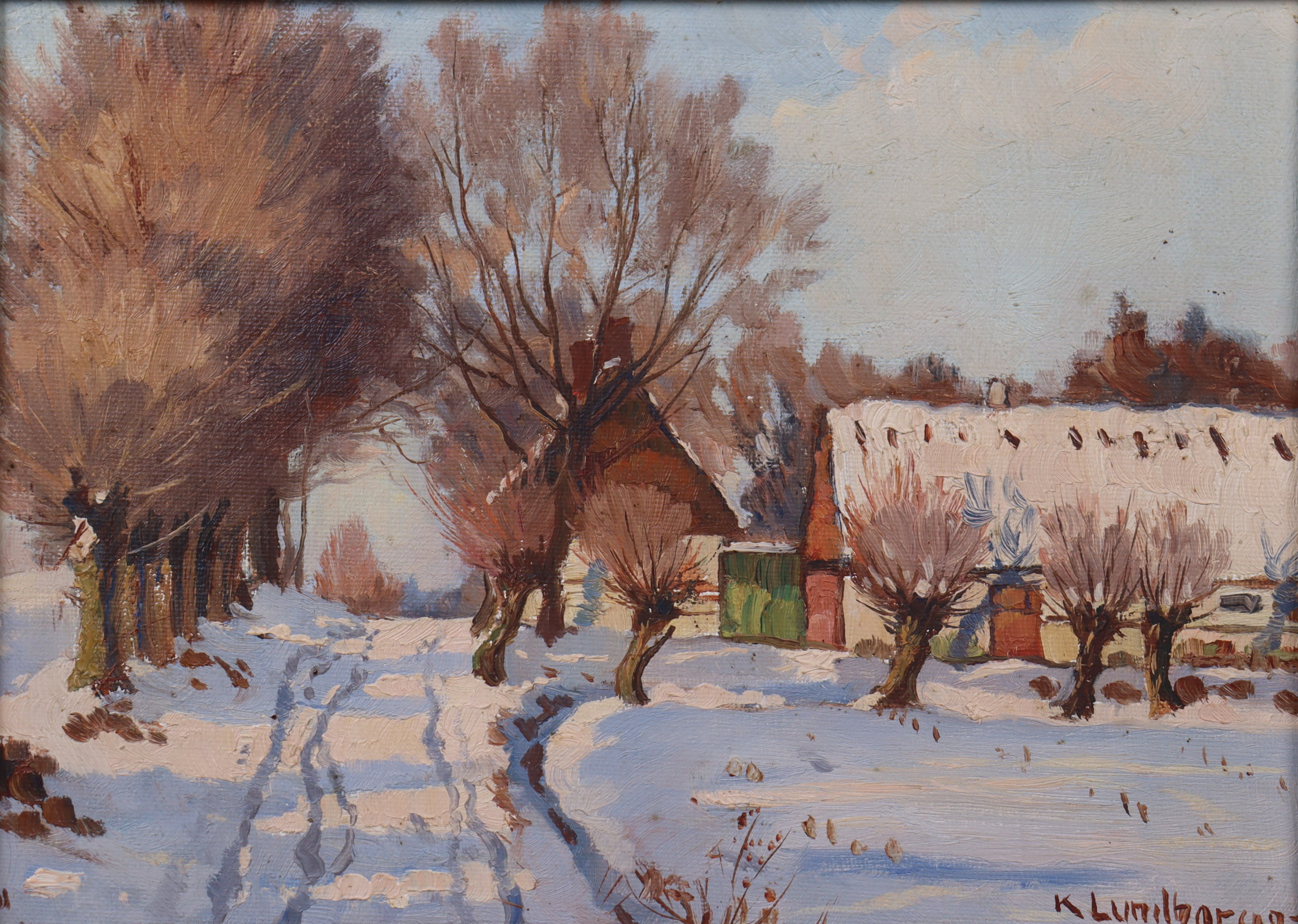 4286367. KARL LUNDBORG. Öl auf Holz, „Sonniger Wintertag“.