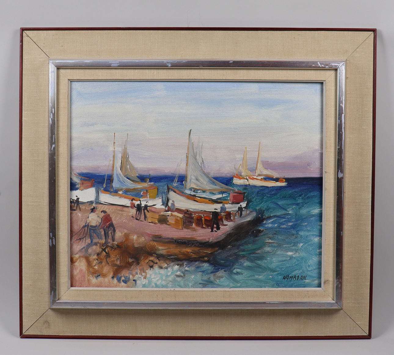 AXEL HAMBORN. Öl auf Leinwand, Fischereihafen.