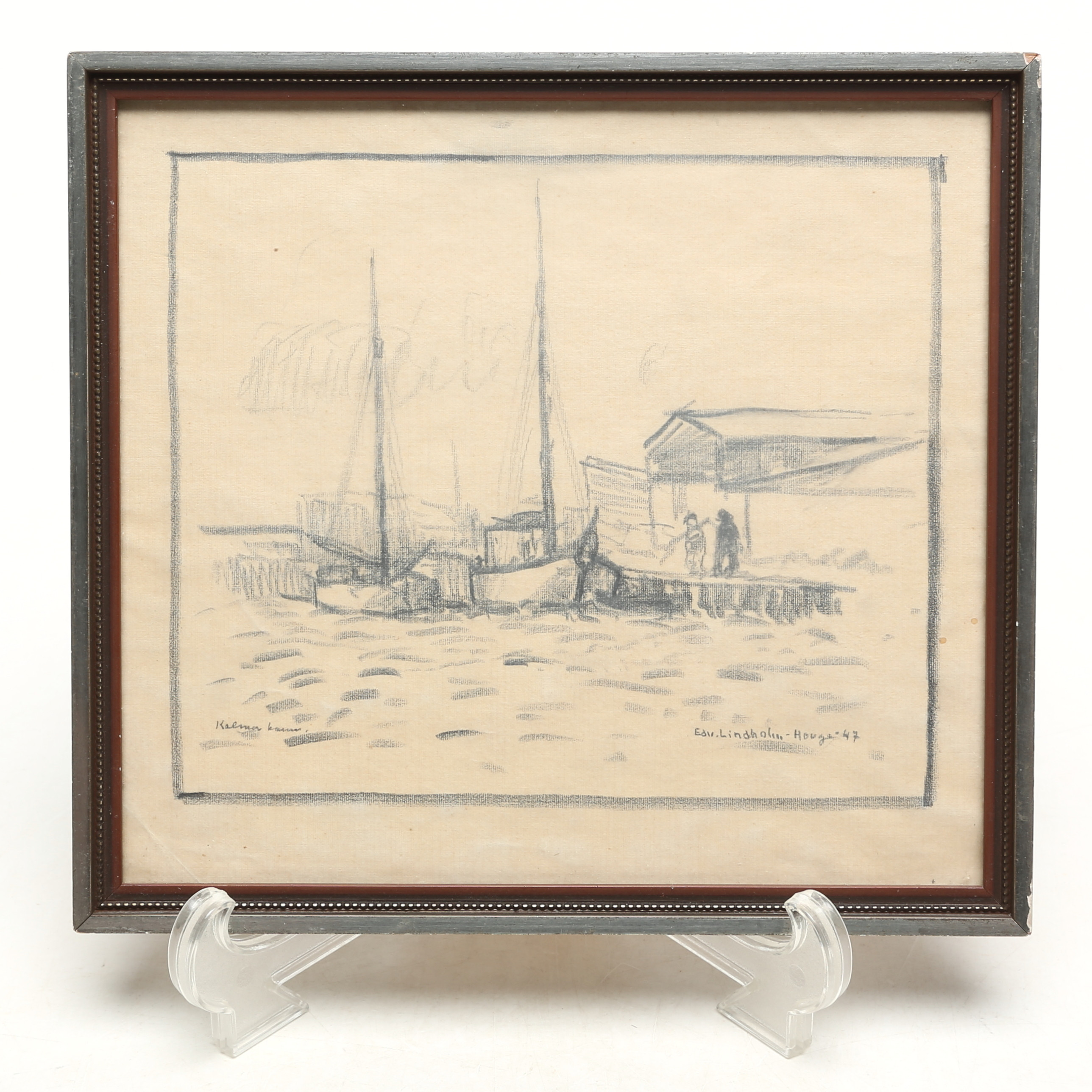 4287390. Eine Zeichnung mit Bleistift, signiert, 1947.
