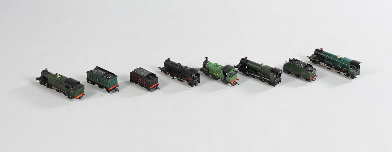 Zum Lieferumfang gehören eine LNER 0-6-0 PT 8477, eine LMS Class 2P 690 Lokomotive und ein Tender, eine GWR Albert Hall 4983 4-6-0 Lokomotive und ein Tender sowie eine Mainline GW 'Anthony Manor' 7801 Lokomotive und Tender sowie eine Airfix GW 6110 Lokomotive. (7).