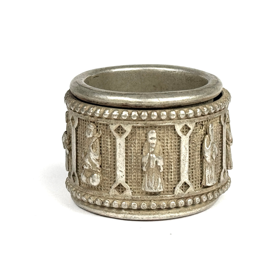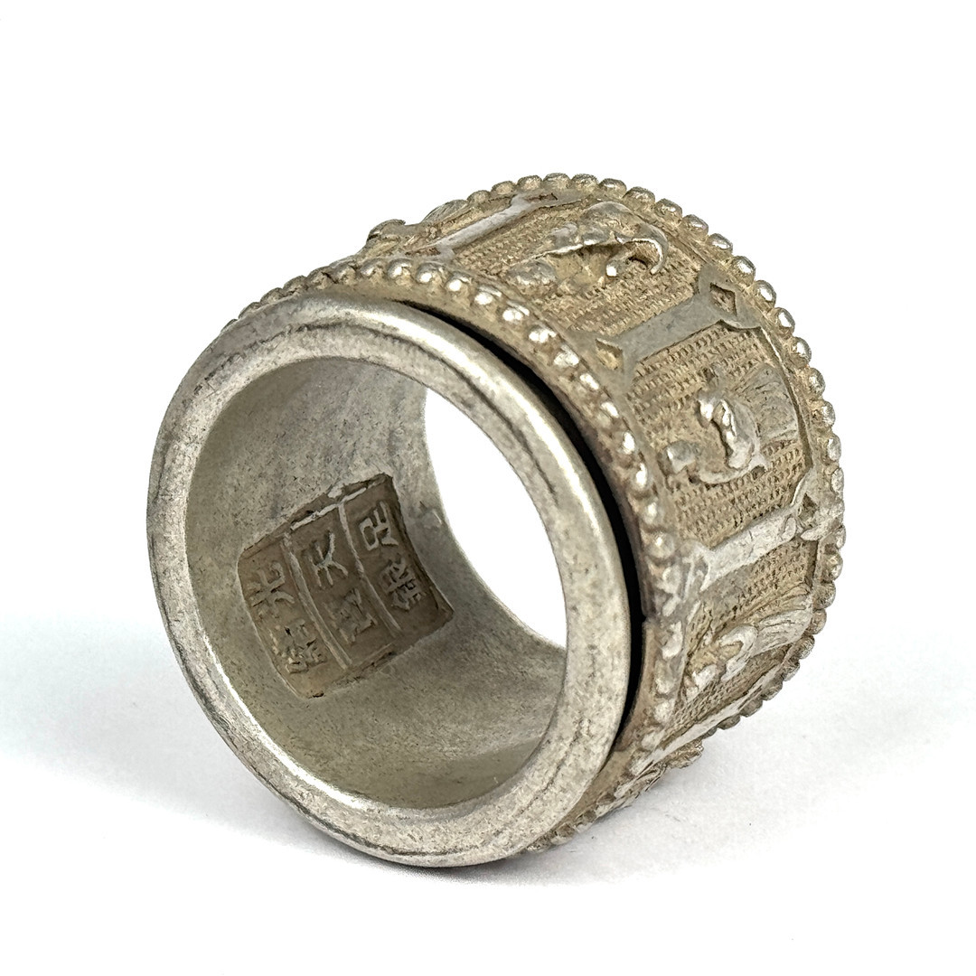 4292314. CHINESISCHER BOGENSCHÜTZENRING AUS WEISSEM METALL.
