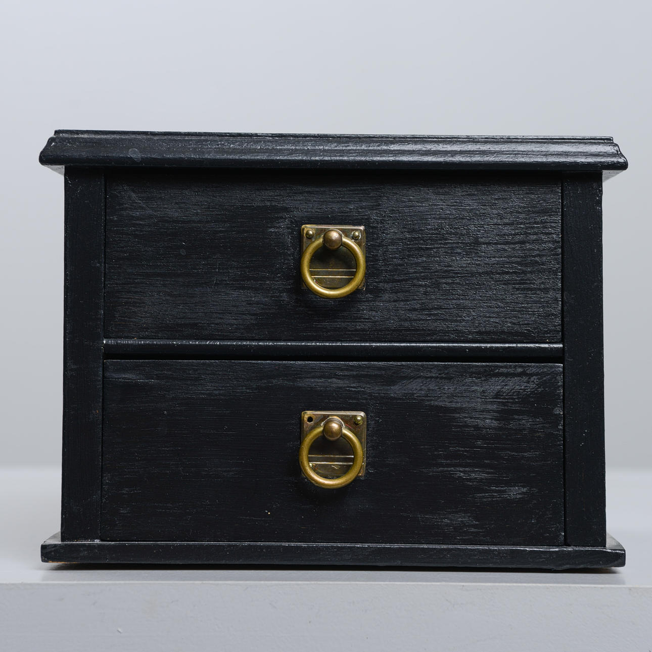 Kleine Schreibtischkommode aus Holz, zwei ausziehbare Schubladen.