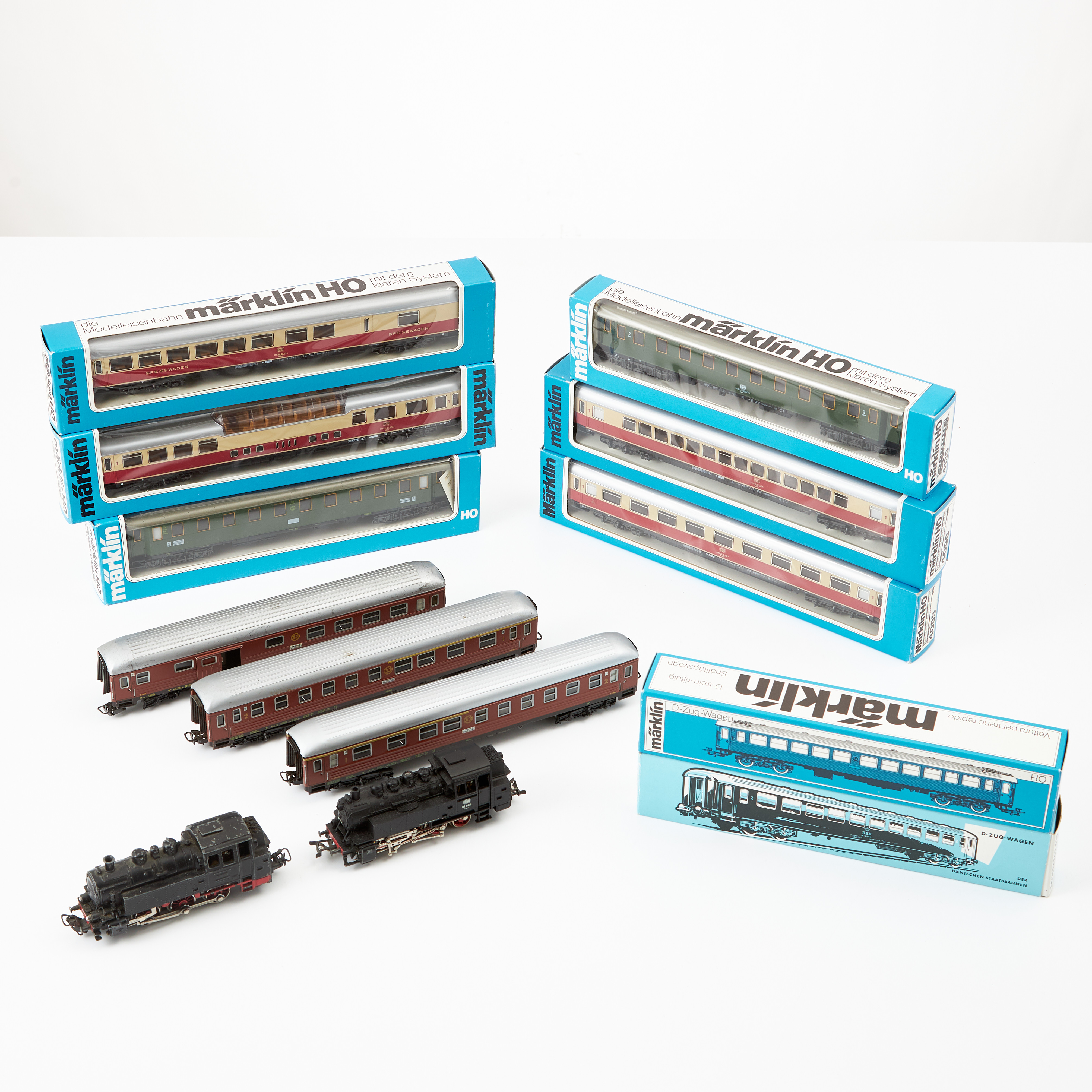 4293391. MÄRKLIN, Lokomotiven, 3 Stück, Wagen, 13 Stück, HO.