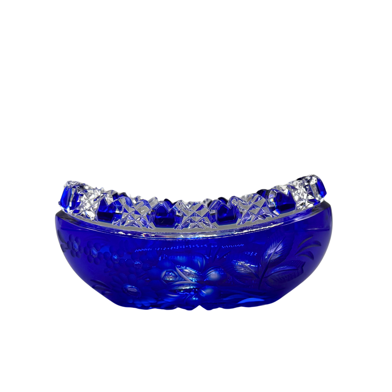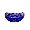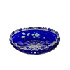 Eine Glasschale aus Kristallglas, mit Schliff. In der Farbe blau.