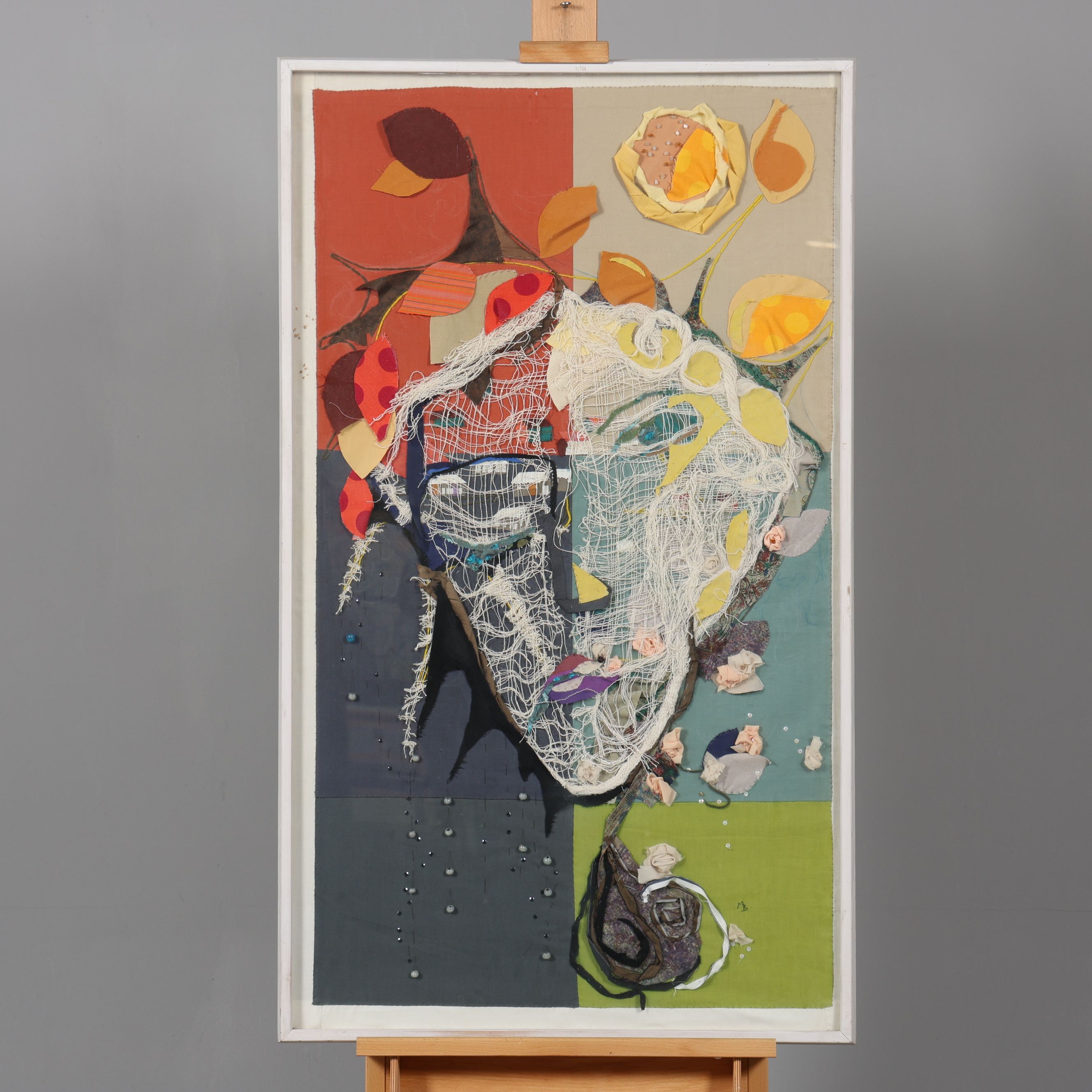 4293656. OIDENTIFIERAD KONSTNÄR. COLLAGE, Textil, signiert MB.