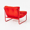 Orangefarbenes Textil- und Stahlrohrgestell, Sitzhöhe ca. 38, Rückenhöhe 66, Breite 66 cm.