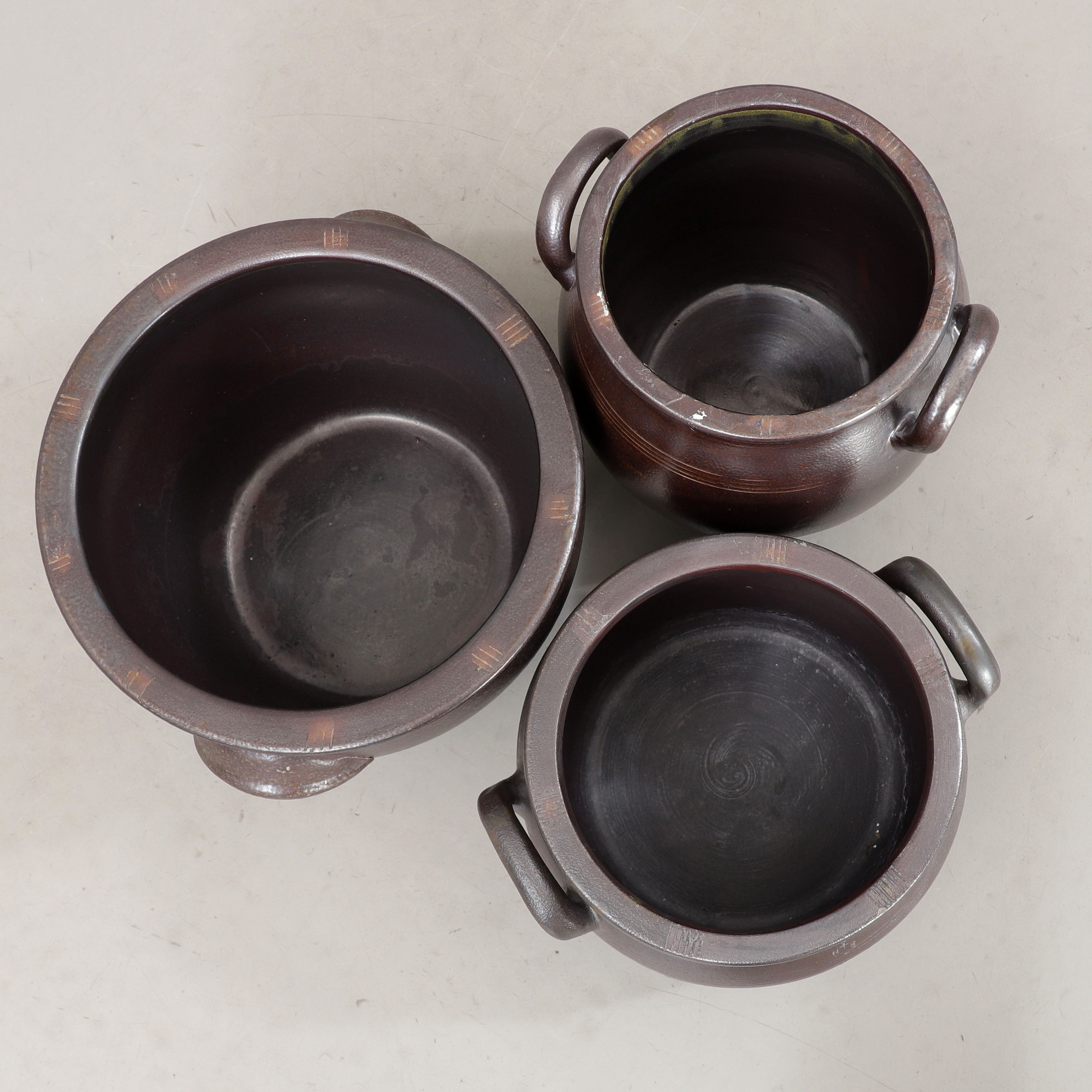 4298036. Ein Set aus 3 Bechern aus Steinzeug, Höganäs.