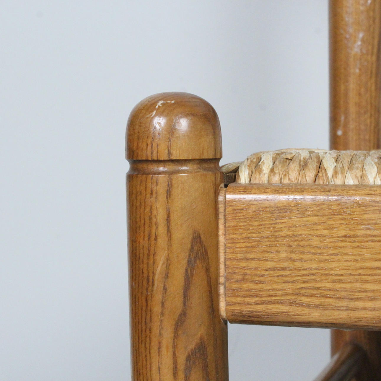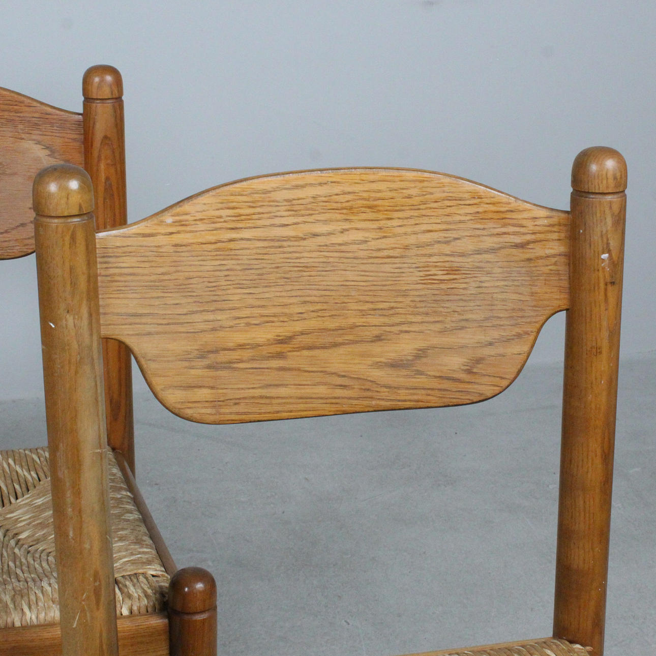 Set Stühle / Esszimmerstühle mit Geflecht, Konstruktion aus Eiche, Sitzflächen aus Geflecht.
