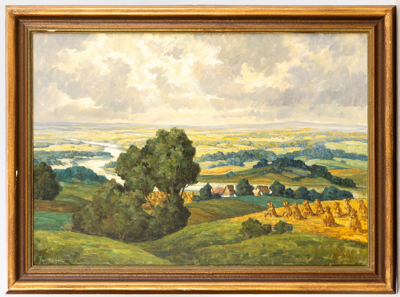 Hans Pawlitschek (1909-1972), Donaulandschaft bei Wien, Öl auf Leinwand, signiert, rückseitig auf Rahmenleiste von fremder Hand (?) betitelt, ca. 71 x 101 cm, mit Rahmen ca. 86 x 115 cm.