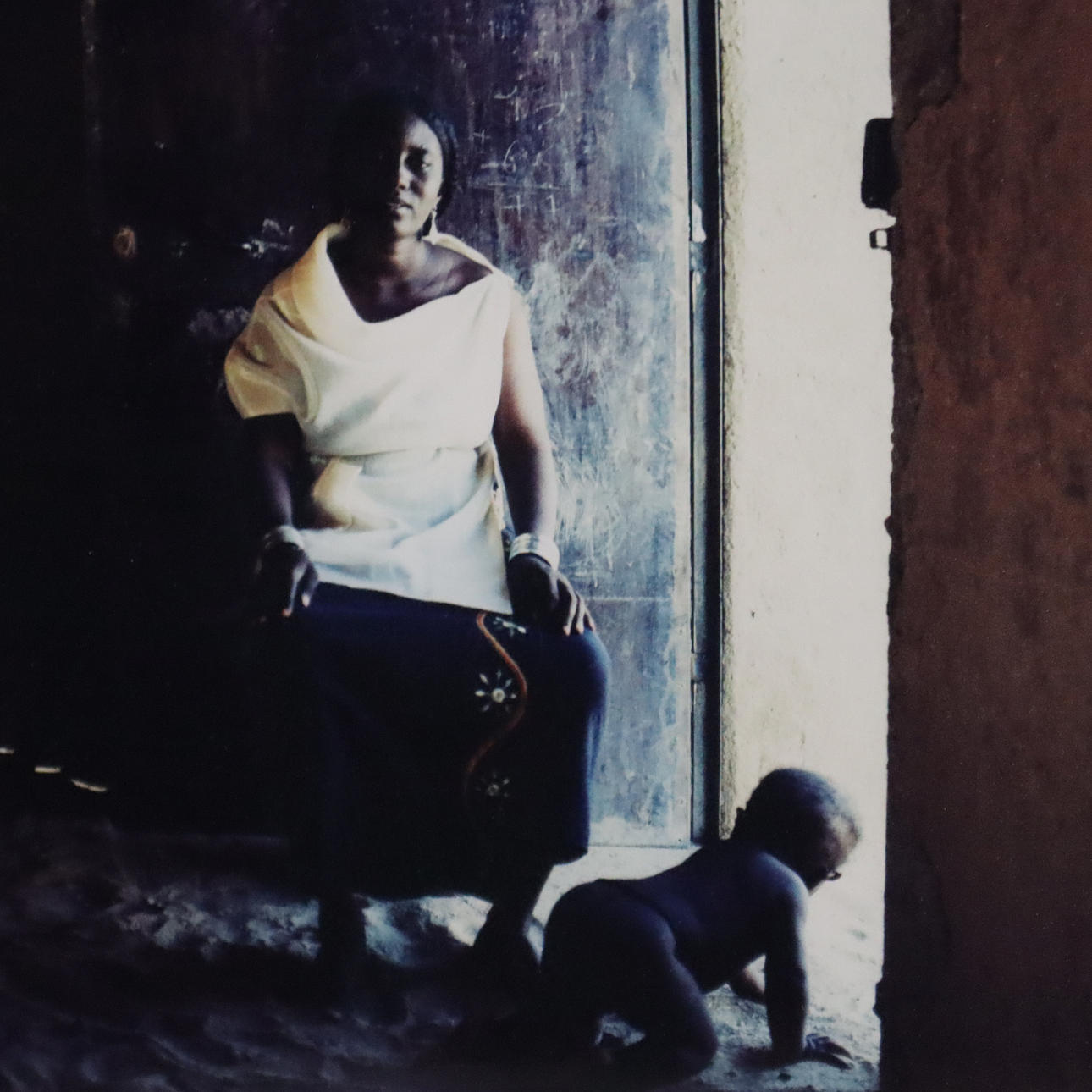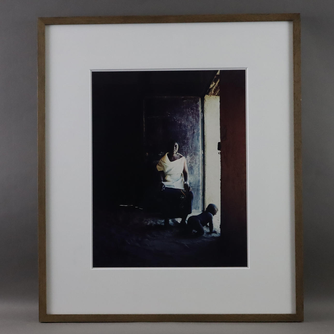 Kunstfotografie - Heimidylle mit Makeln - Mutter und Kind in ärmlicher Behausung, in sehr aufwändiger verglaster Holzrahmung mit Passepartout, 46,5 x 36,5 cm, Rahmengröße 72,2 x 62 cm.