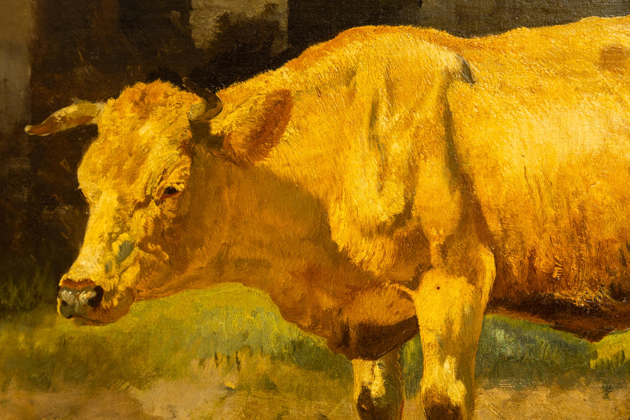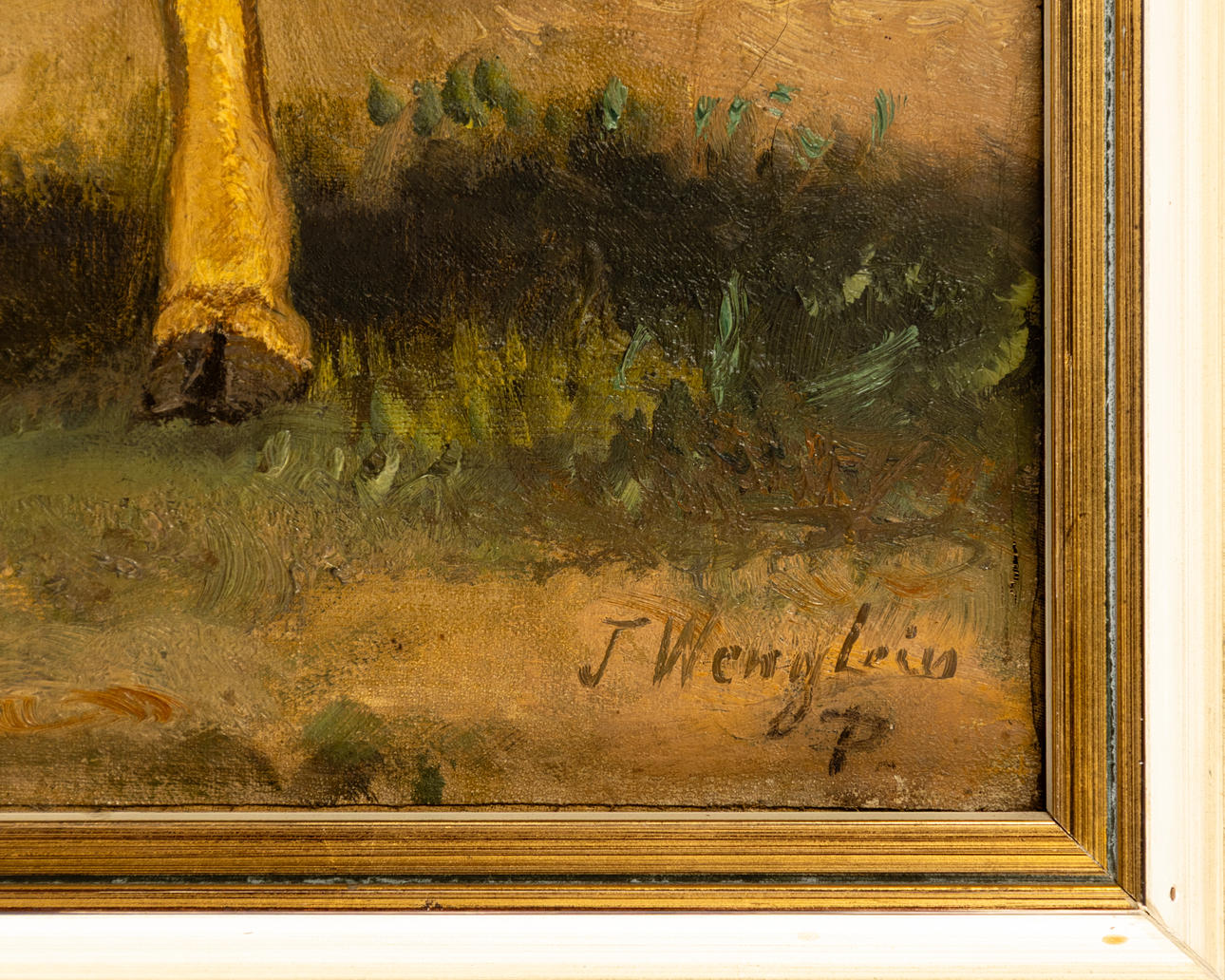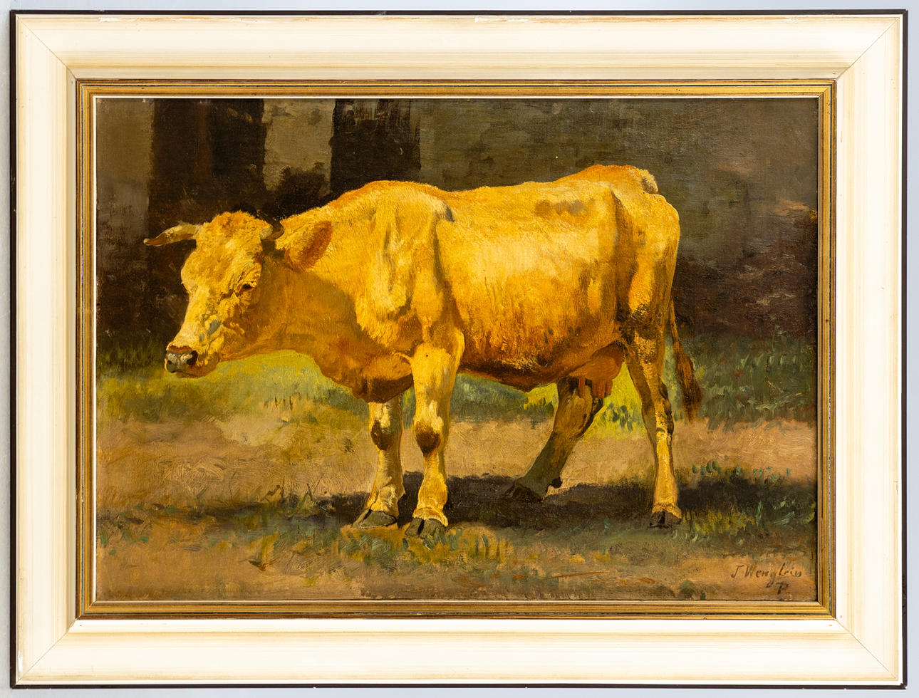 Josef Wenglein (1845-1919), Kuh auf der Weide, Öl auf Leinwand, doubliert, signiert und bezeichnet "J. Wenglein P.", ca. 38 x 54 cm, mit Rahmen ca. 50 x 66 cm.
