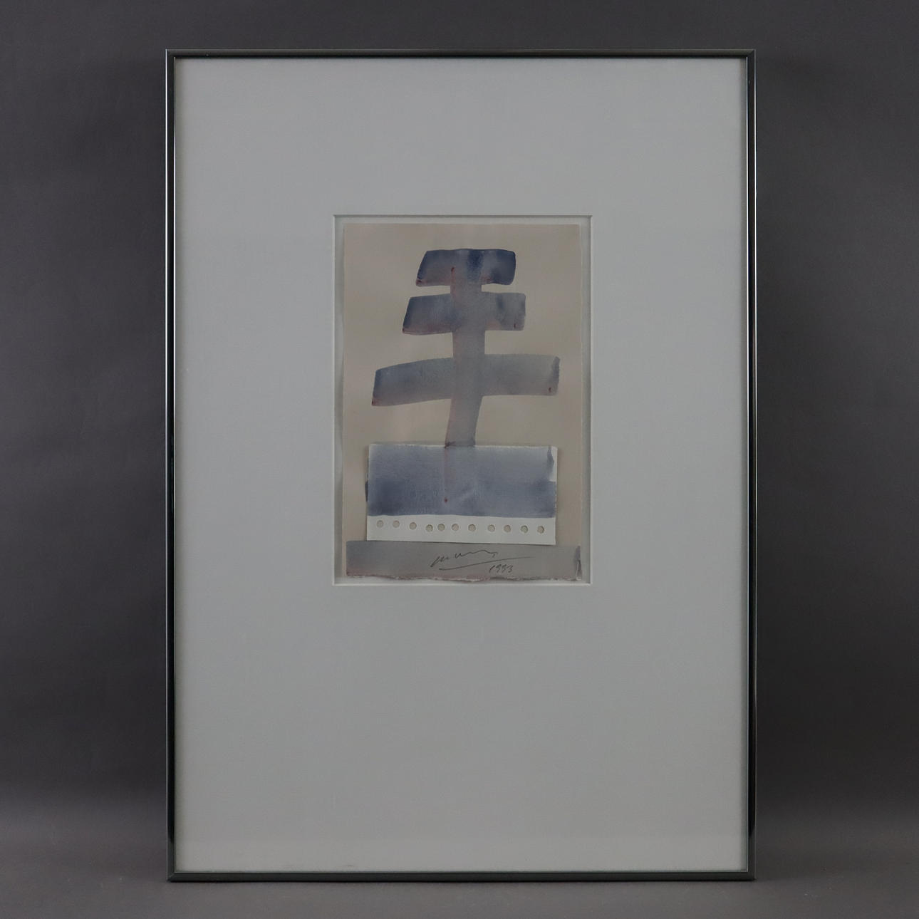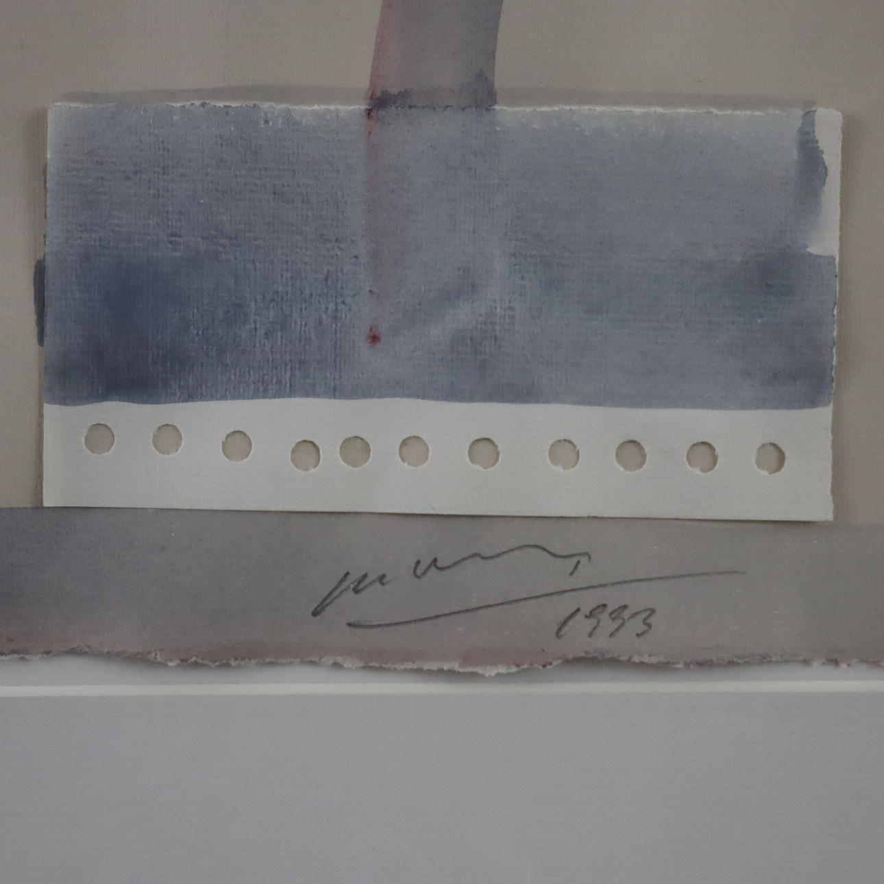 unten mittig signiert und datiert, Blattmaße ca. 25,5 x 17 cm, fachmännisch mit Passepartout unter Glas freigestellt gerahmt, gebürstete silberne Metallleiste, Rahmenmaße: ca. 60 x 42,5 cm