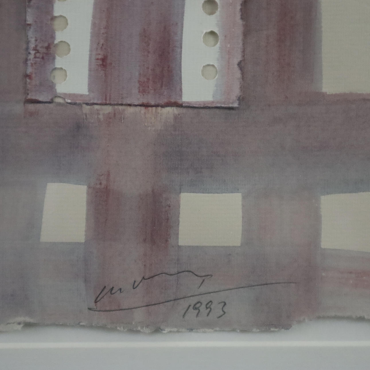 unten mittig signiert und datiert, Blattmaße ca. 25,5x17,5cm, mit Passepartout unter Glas freigestellt gerahmt, Rahmen mit silberner gebürsteter Metallleiste, Gesamtmaße ca. 60 x 42,5 cm