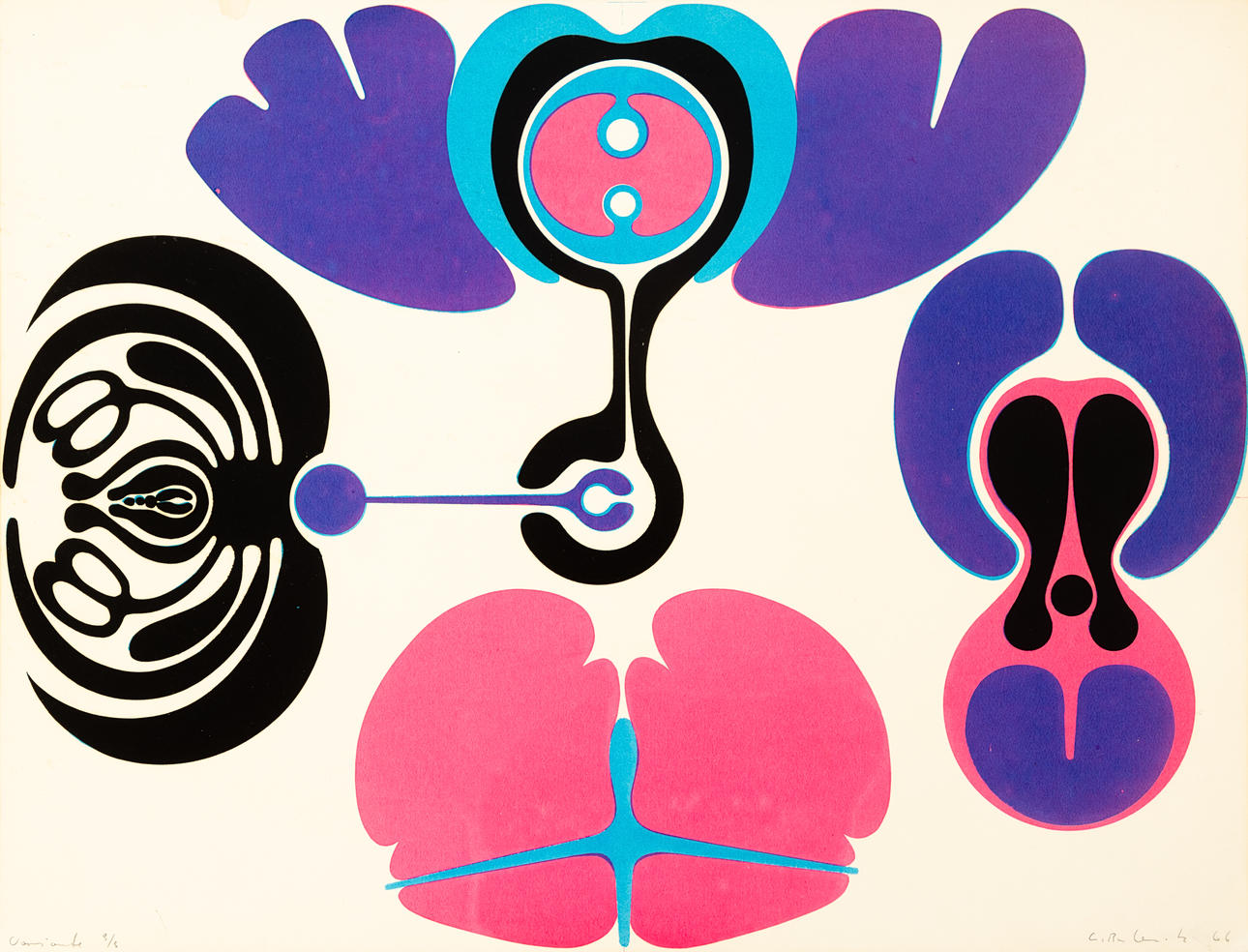 3 Blatt: Gernot Bubenik (geb. 1942), Farbserigraphien, 1966-67, alle signiert und datiert, zwei Blätter nummeriert, eines bezeichnet "Probedruck V", aus verschiedenen Auflagen, bis 150 Exemplaren, Blattformat bis ca. 60 x 80 cm.