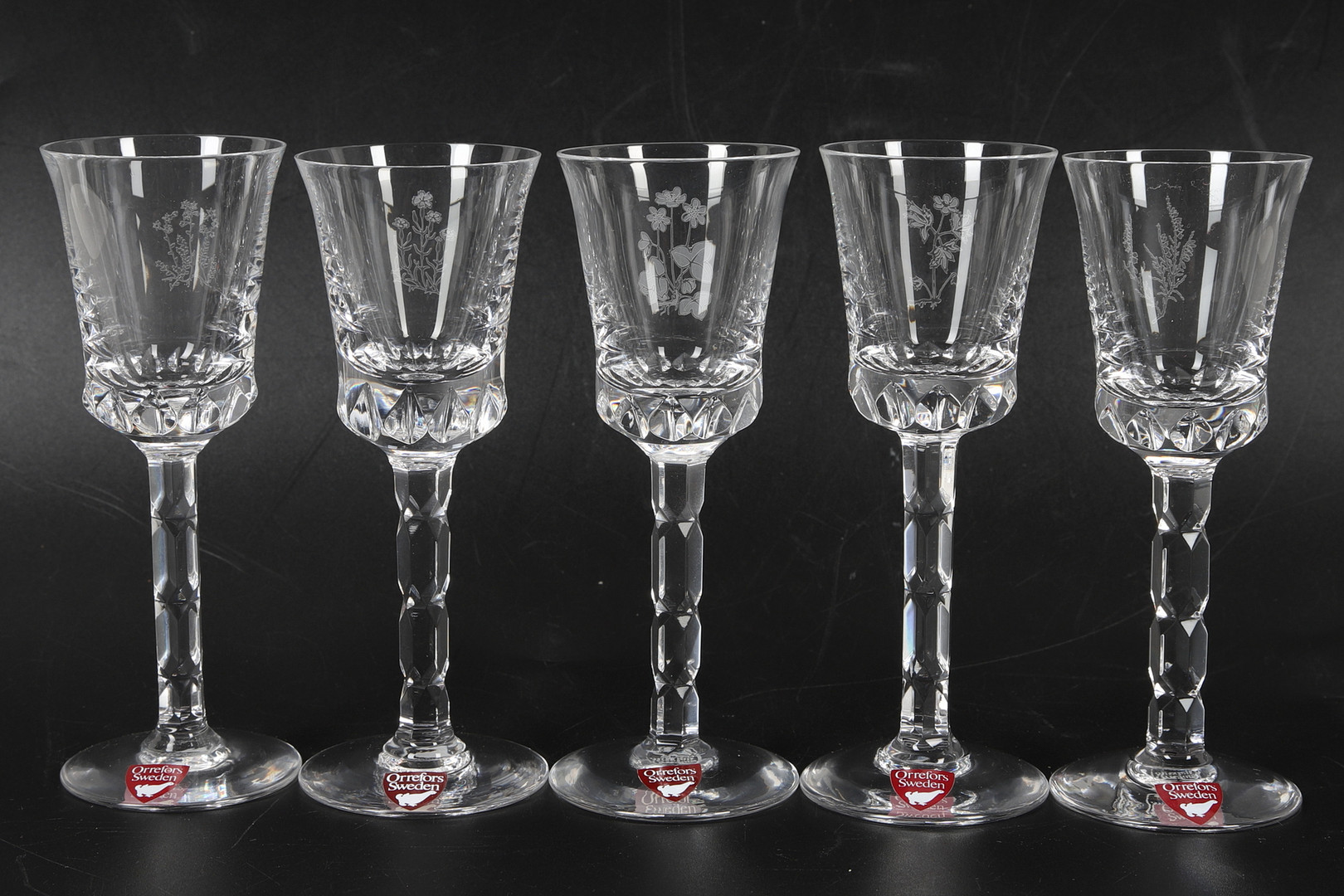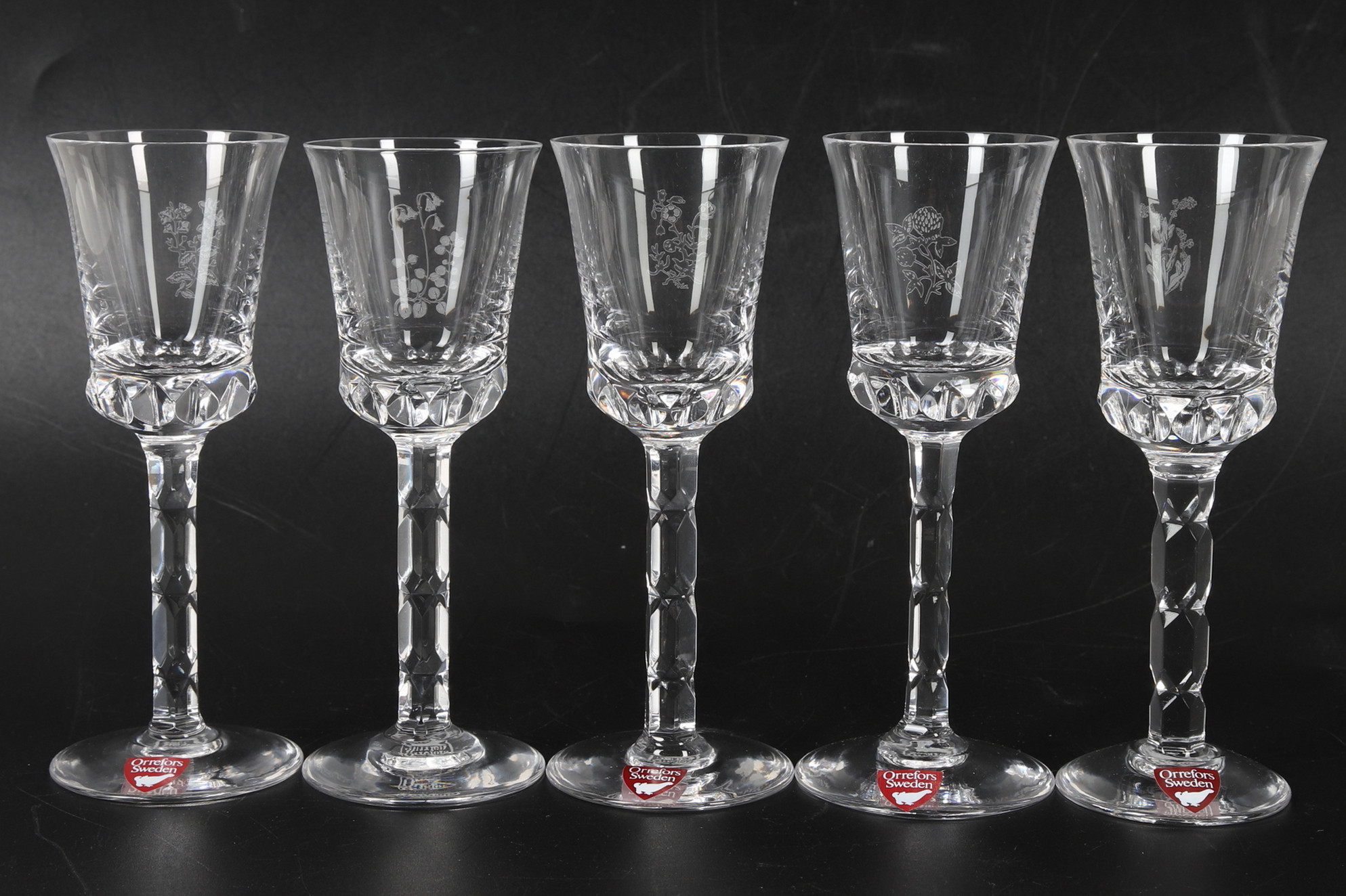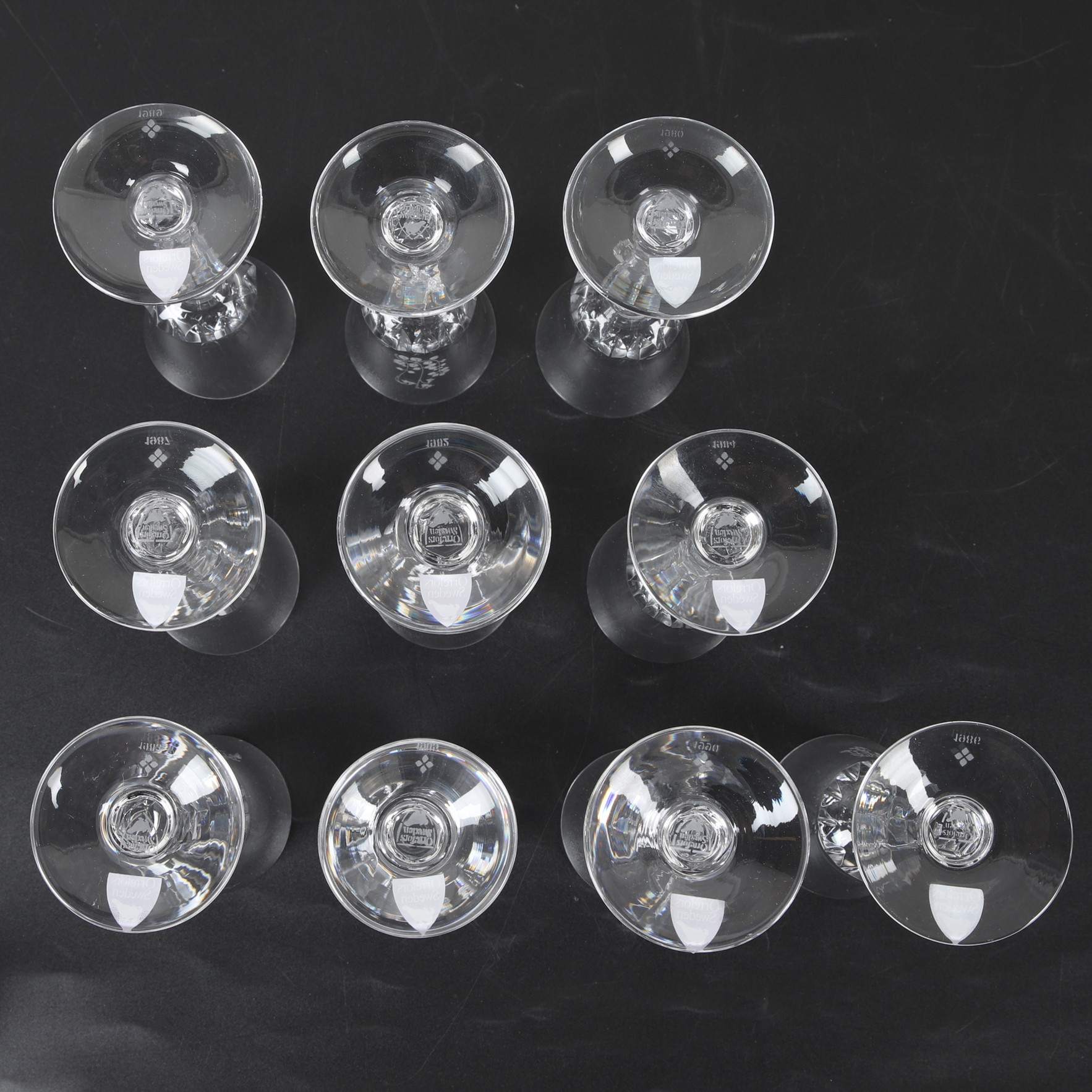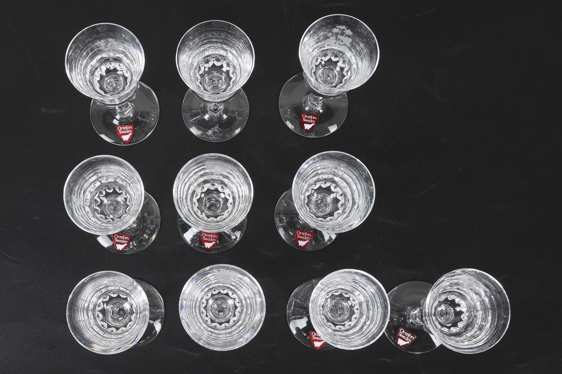 4303224. SNAPSGLAS, 10 Stück, Schnittblumendekor, Orrefors.