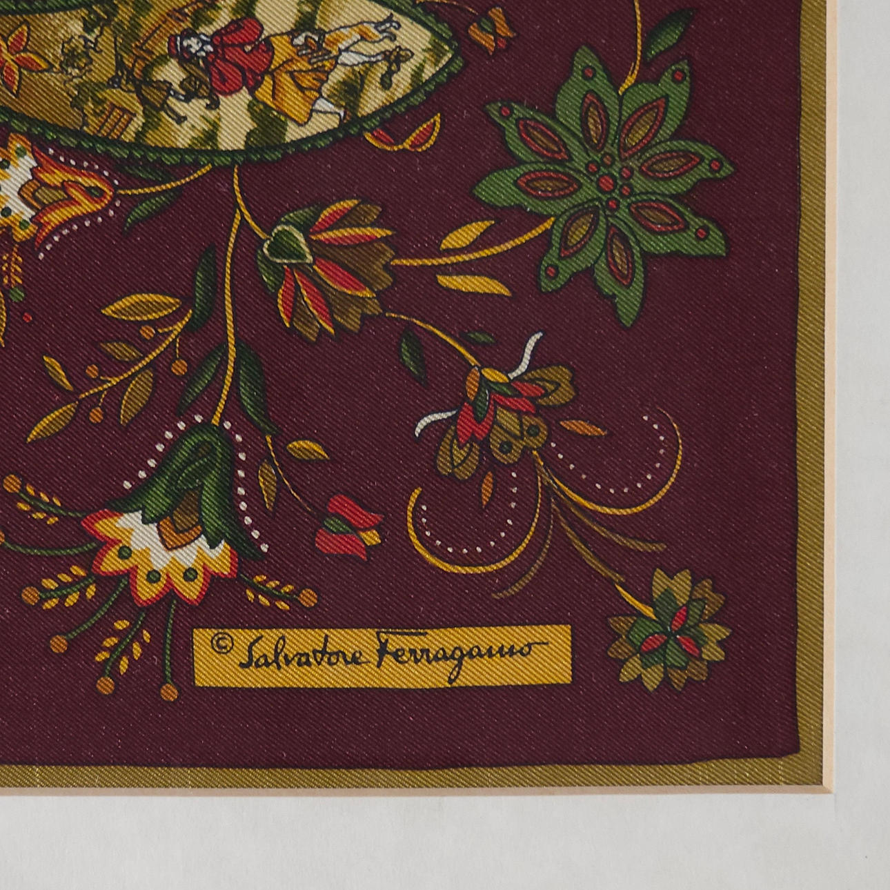 4304645. SALVATORE FERRAGAMO. Seidentuch mit Jagdmotiv.
