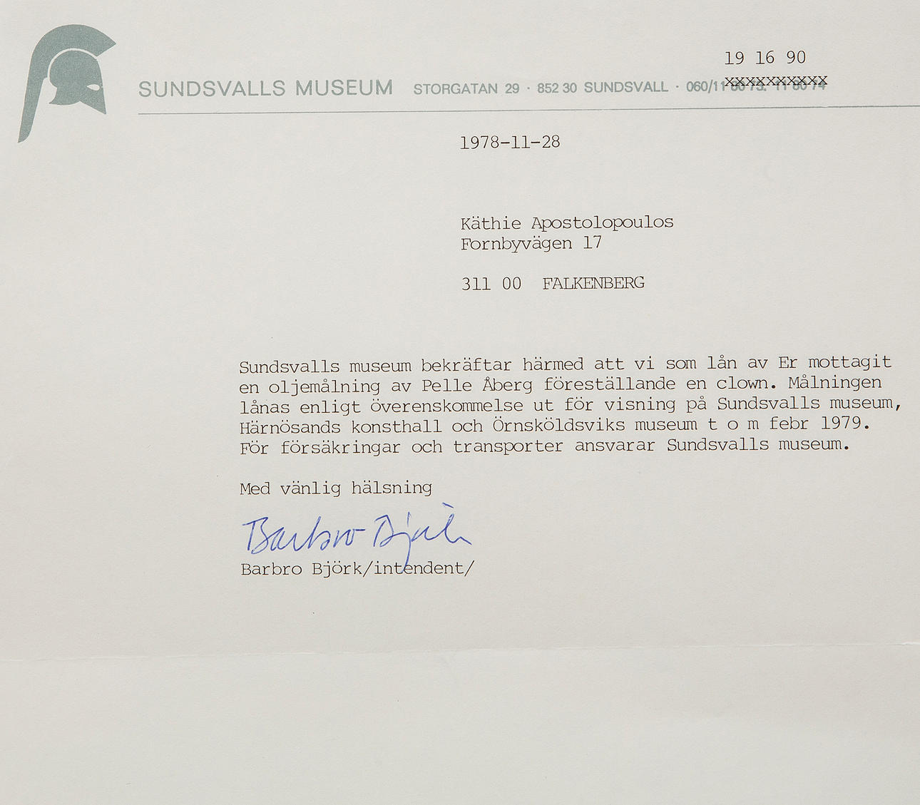 AUSSTELLUNGEN Sundsvall Museum, Härnösands Konsthall und Örnsköldsvik Museum im Zusammenhang mit der Gedenkausstellung für Pelle Åberg 1978-79.