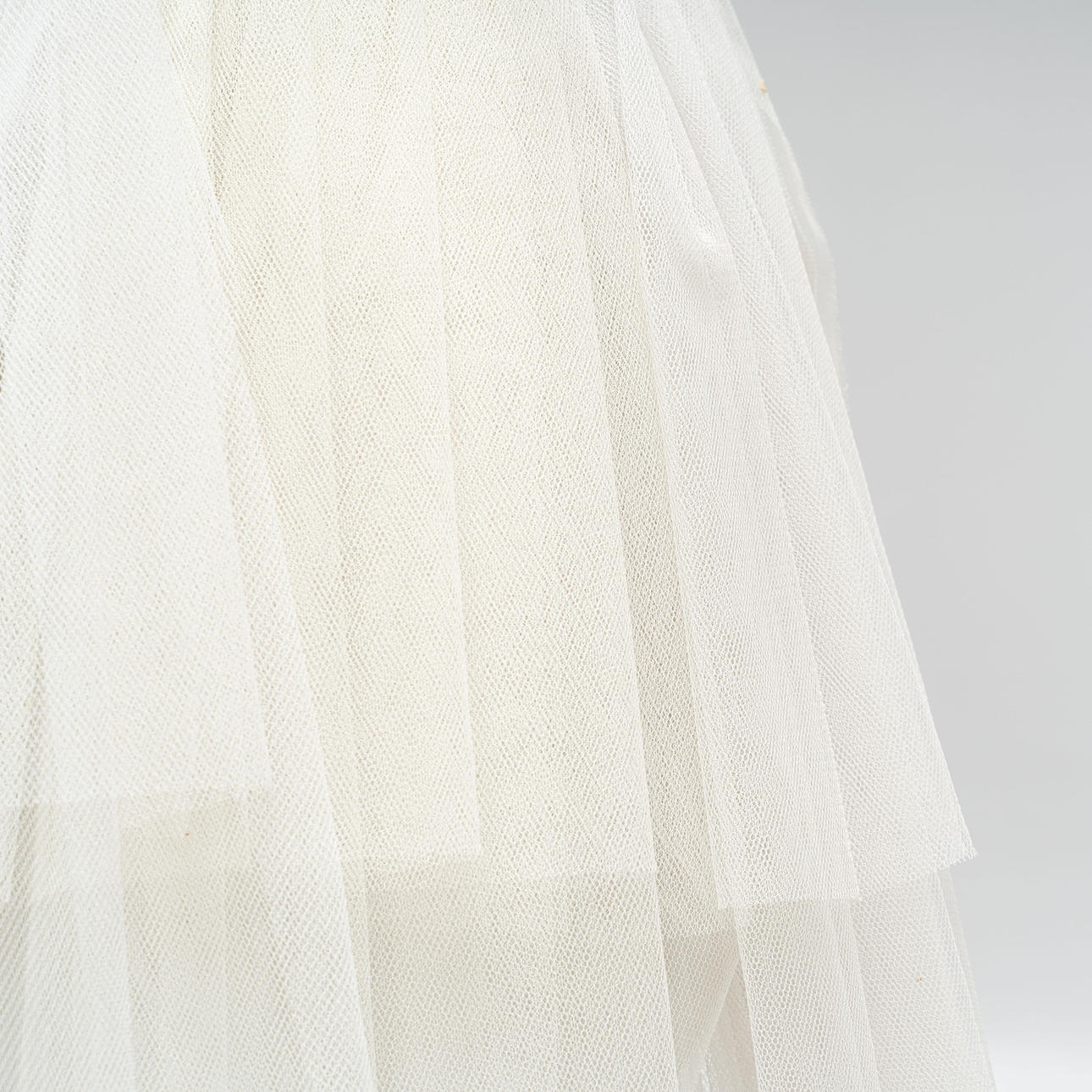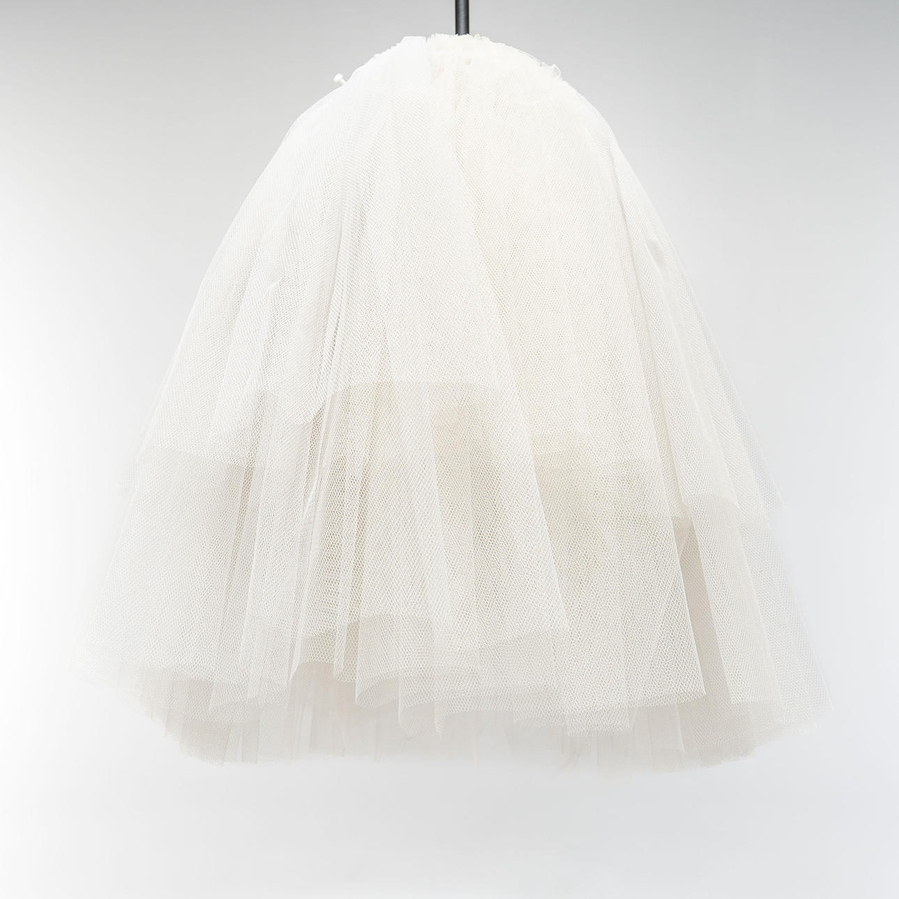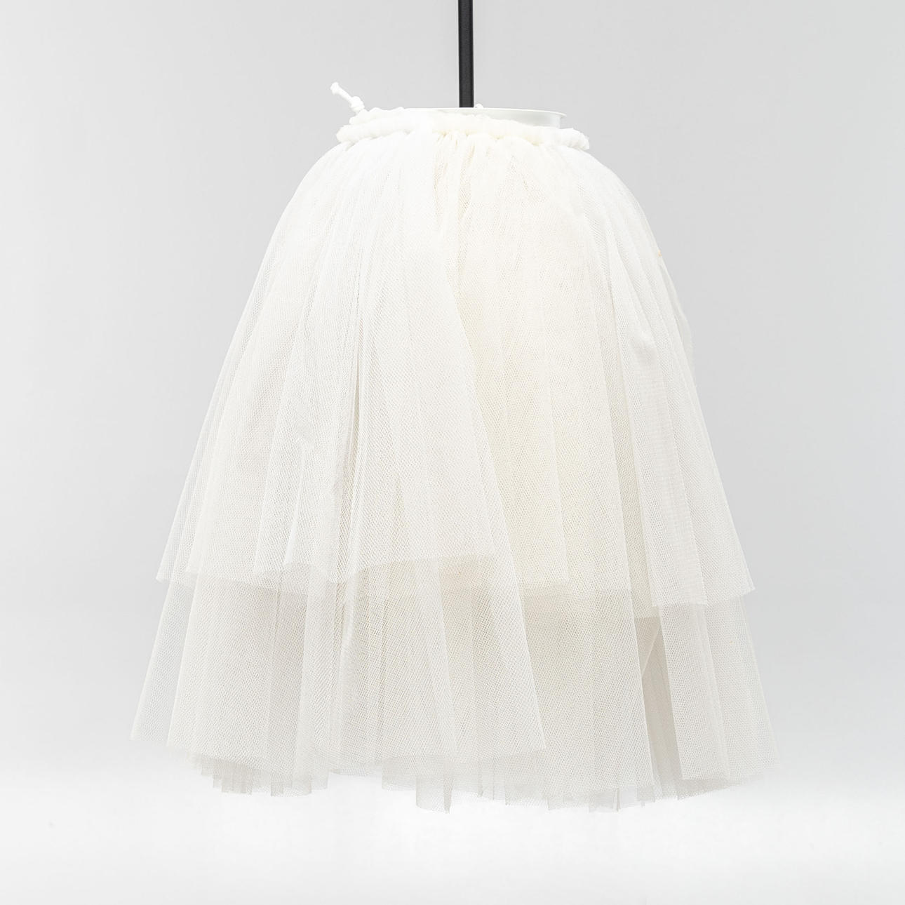 Schirm aus weißem und hellgelbem Tüll. Gestell aus schwarz und weiß lackiertem Stahl.
