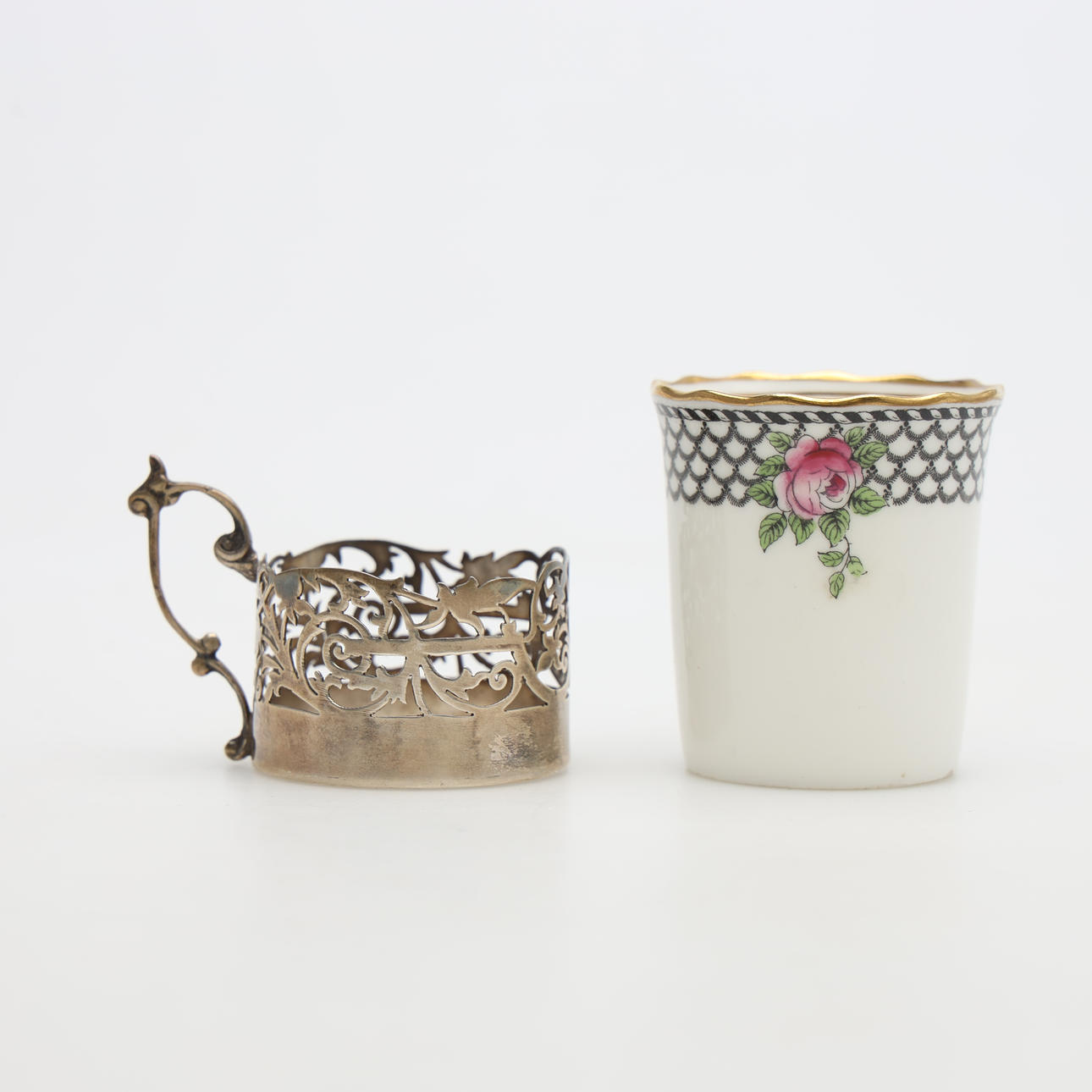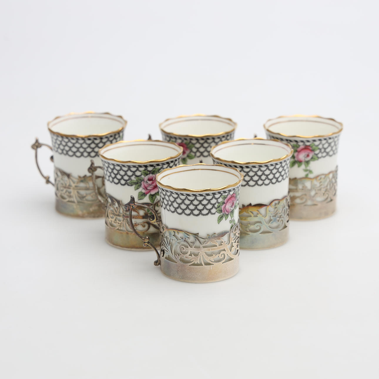 Griffe für die Tassen in Silber. Gewicht etwa 116 Gramm.