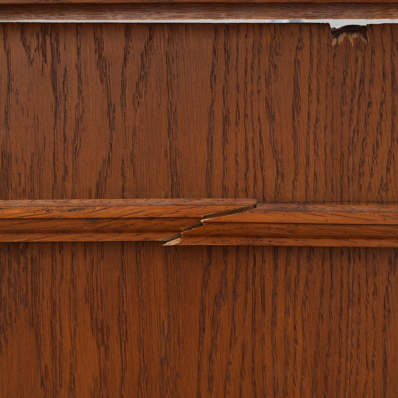 Eine Seite der Rückwand locker/ist heruntergefallen, später renoviert, Kratzer und Abnutzungen an der Tür, Zierleisten leicht locker.